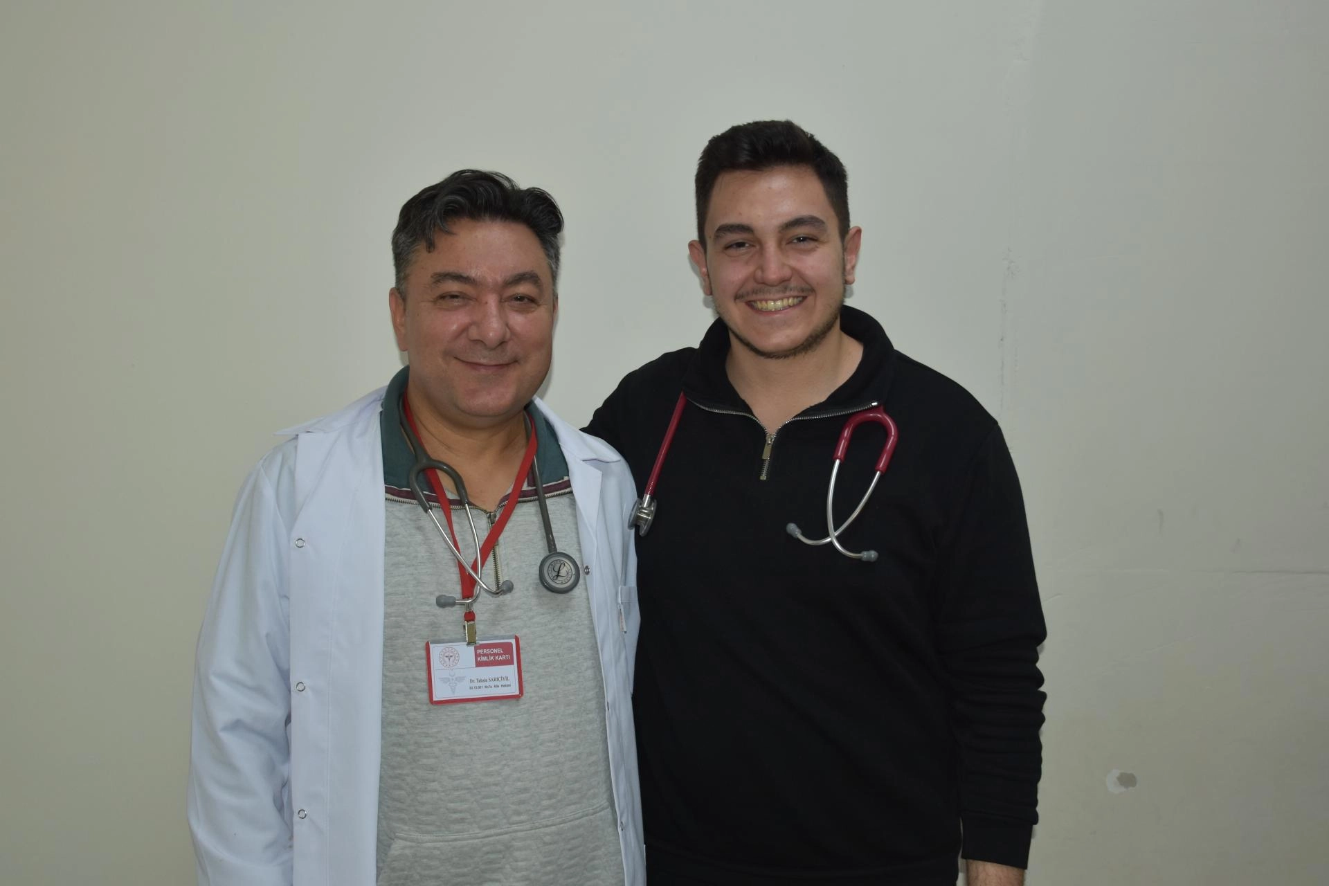 Babasıyla aynı ilçede görev yapmanın mutluluğunu yaşayan Onur Emre Sarıçiyil, babasının da desteğiyle hastalara şifa olmaya çalışıyor.