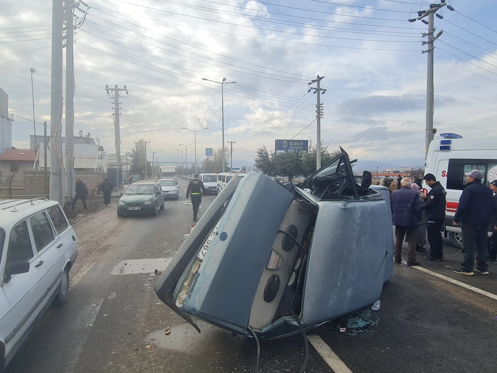 Afyonkarahisar'ın Şuhut ilçesinde meydana gelen trafik kazasında, A.Y. ve diğer A.Y.'nin kullandığı araçlar çarpıştı. Kazada her iki sürücü ve araçlardaki yolcular H.Y., S.Y., F.A., B.A. (13) ve B.A. (8) yaralandı. Yaralılar, olay yerine gelen sağlık ekiplerince hastaneye kaldırıldı ve hayati tehlikelerinin bulunmadığı belirtildi. Polis ve itfaiye ekipleri de olay yerinde güvenlik önlemleri aldı. Kazayla ilgili soruşturma başlatıldı ve olayın nedenleri araştırılıyor.