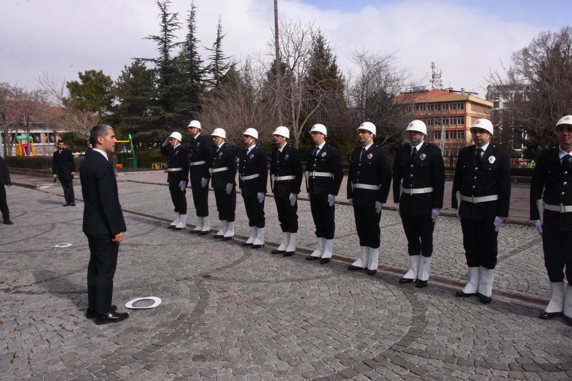 Valilik önünde kendisini karşılayan il protokolüyle tokalaşan Vali Aktaş, tören mangasını selamladı.