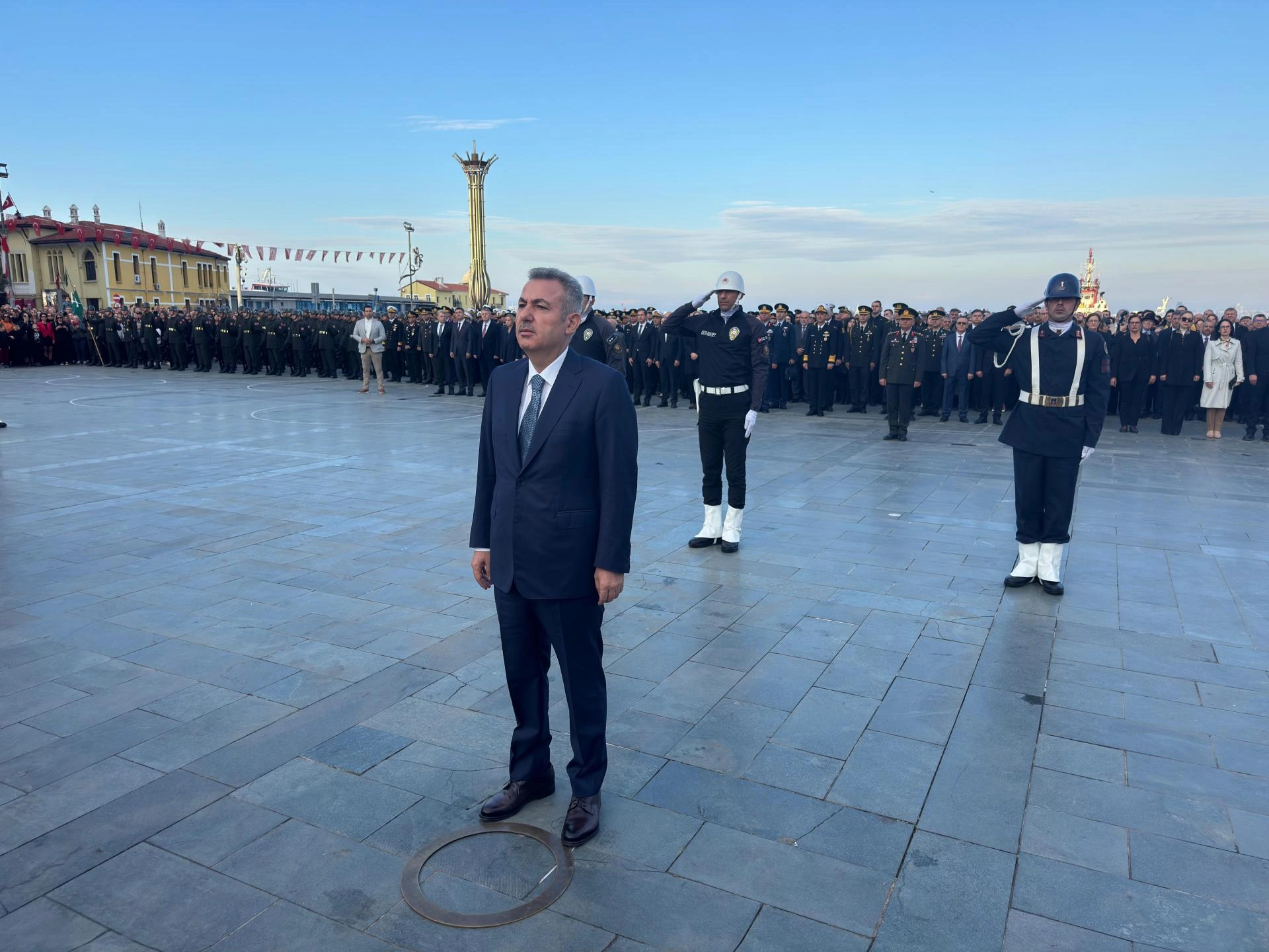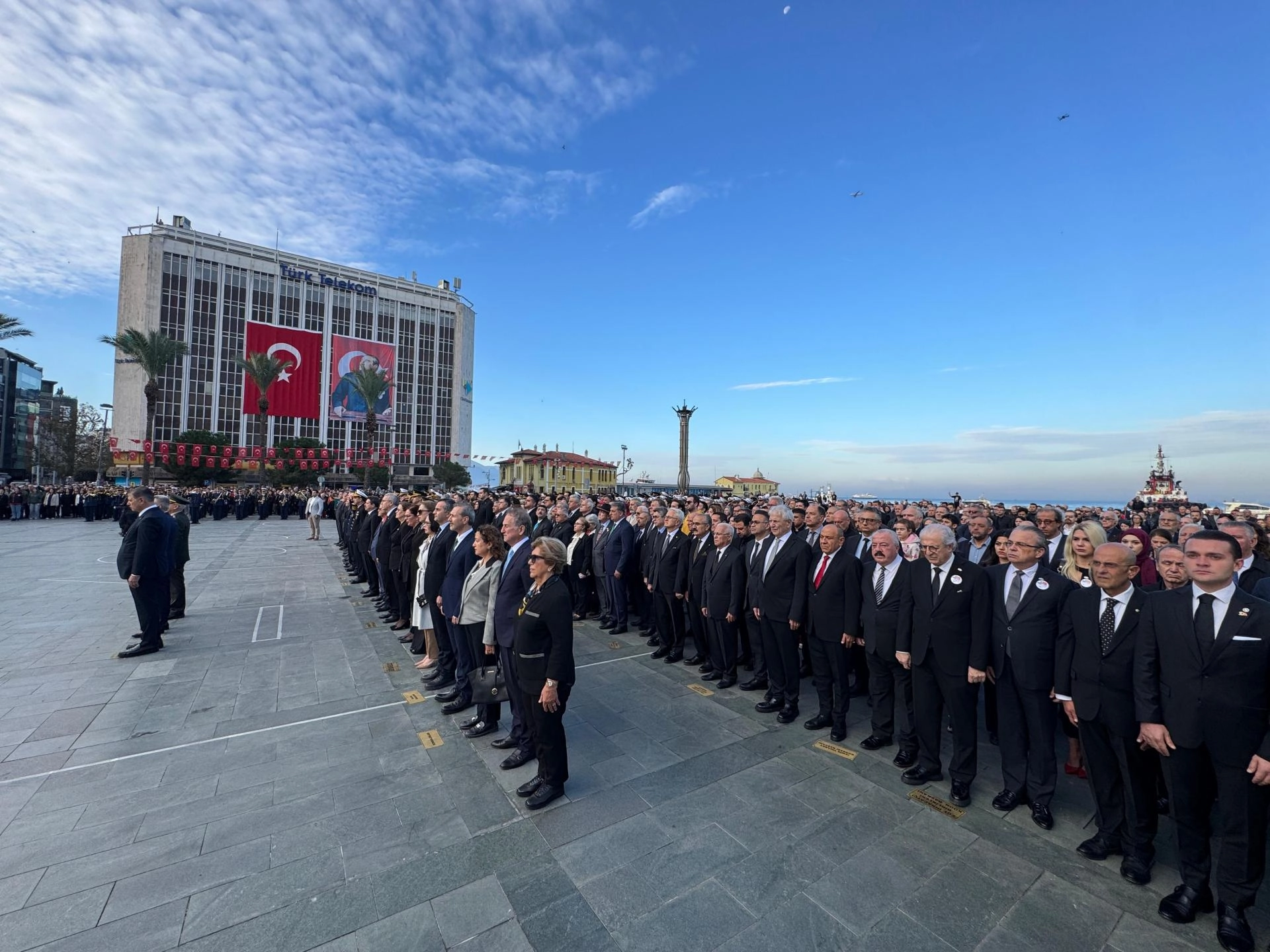 İzmir'de Cumhuriyet Meydanı'ndaki törende İzmir Valisi Süleyman Elban, Ege Ordusu ve Garnizon Komutanı Orgeneral İrfan Özsert ve İzmir Büyükşehir Belediye Başkanı Cemil Tugay, Atatürk Anıtı'na çelenk sundu.