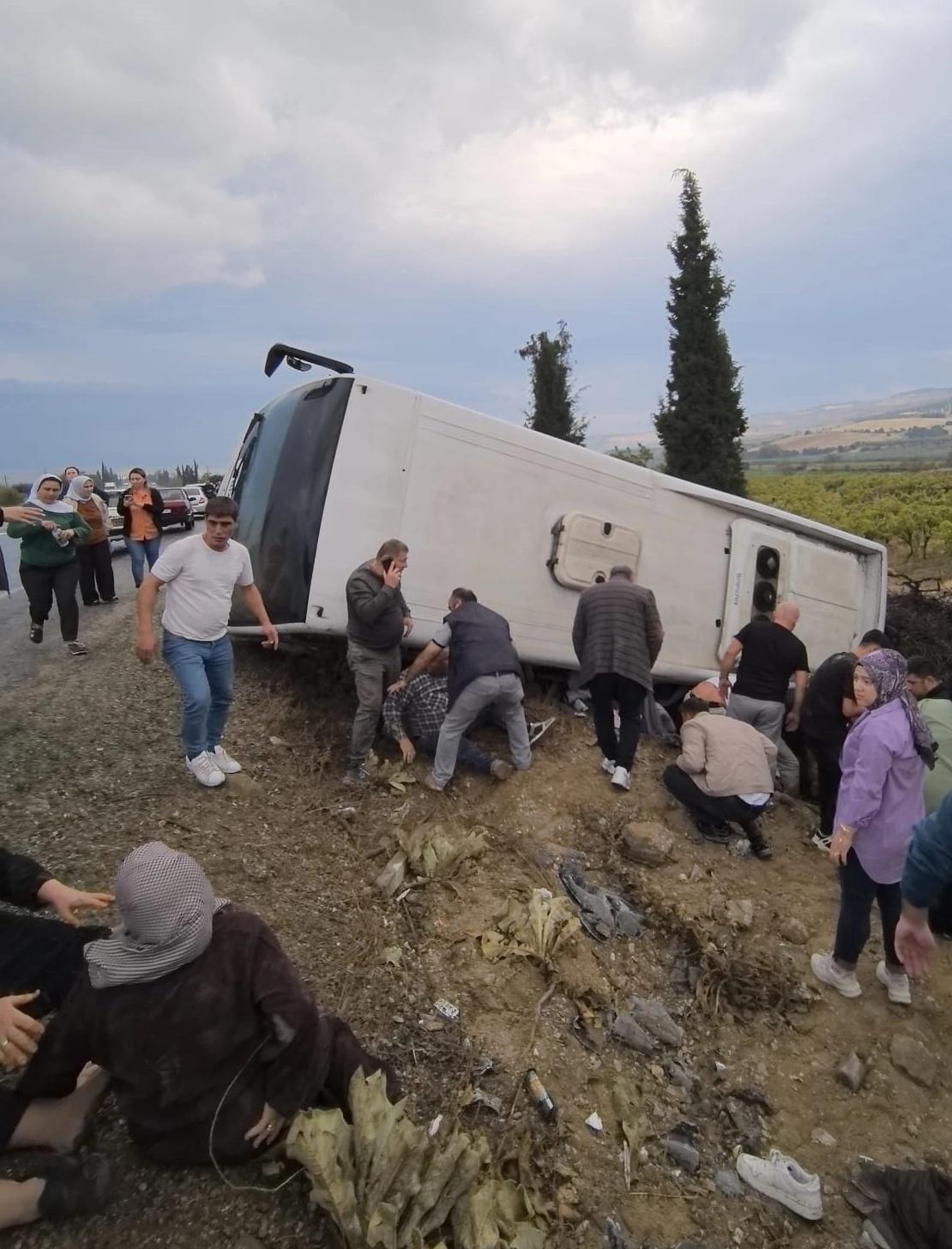 C.U. (49) yönetimindeki 35 CEJ 948 plakalı günübirlik tura katılanları taşıyan midibüs, Bölmekaya Mahallesi yakınlarında şarampole devrildi.
