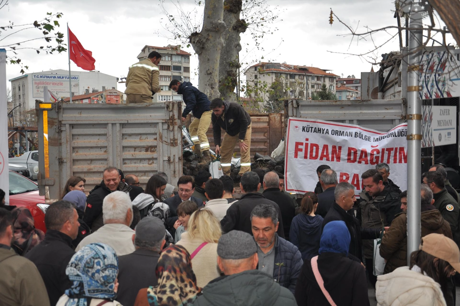 Vali Yardımcıları Süleyman Ovalı, Harun Kazez ve Kütahya Orman Bölge Müdürü Erdal Dingil'in dağıttığı fidanlar kısa sürede tükendi.