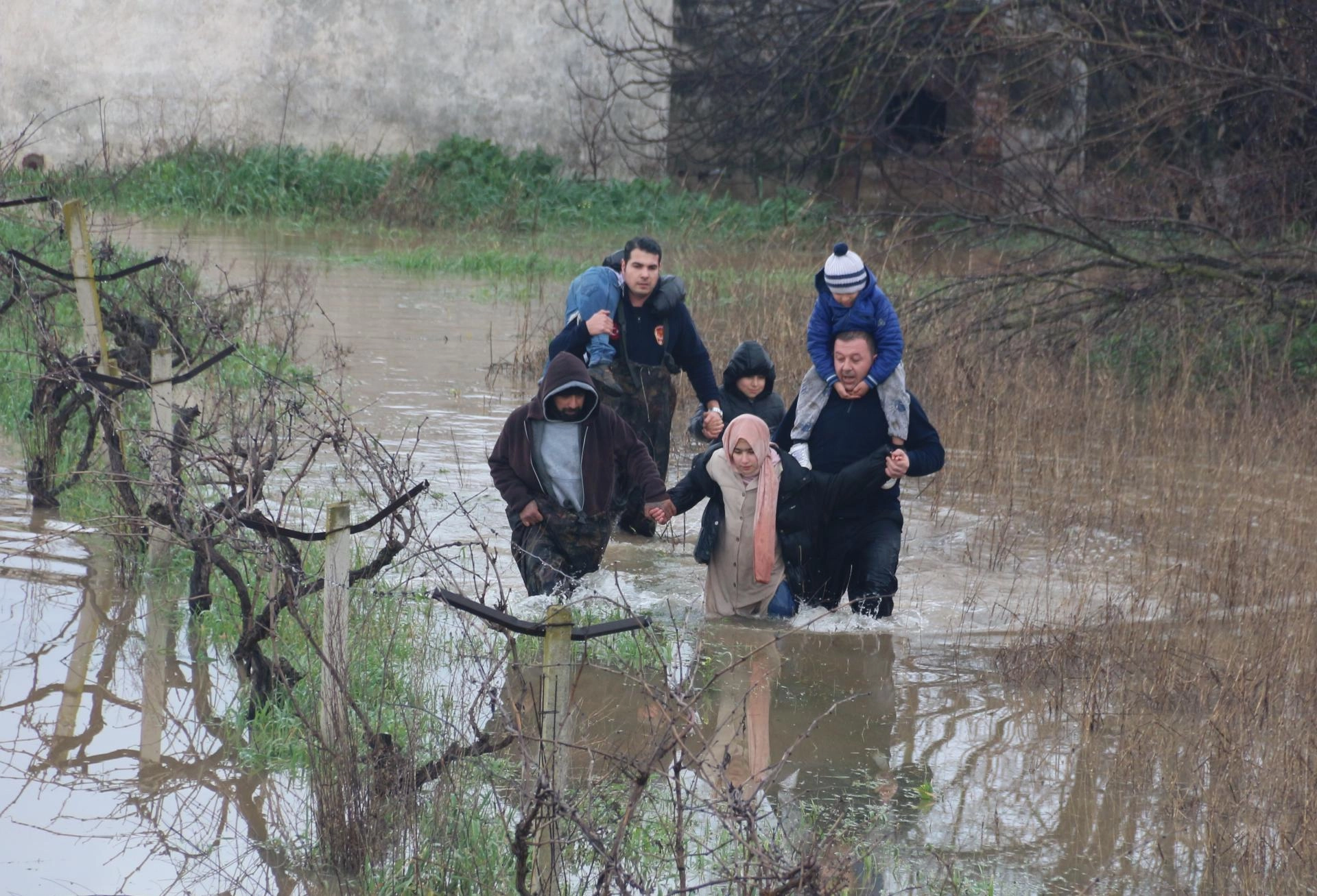 Alınan bilgiye göre, su altında kalan tarım arazisindeki bağ evinde bulunan yabancı uyruklu baba ve 4 çocuğu, durumu 112 Acil Çağrı Merkezine bildirdi.