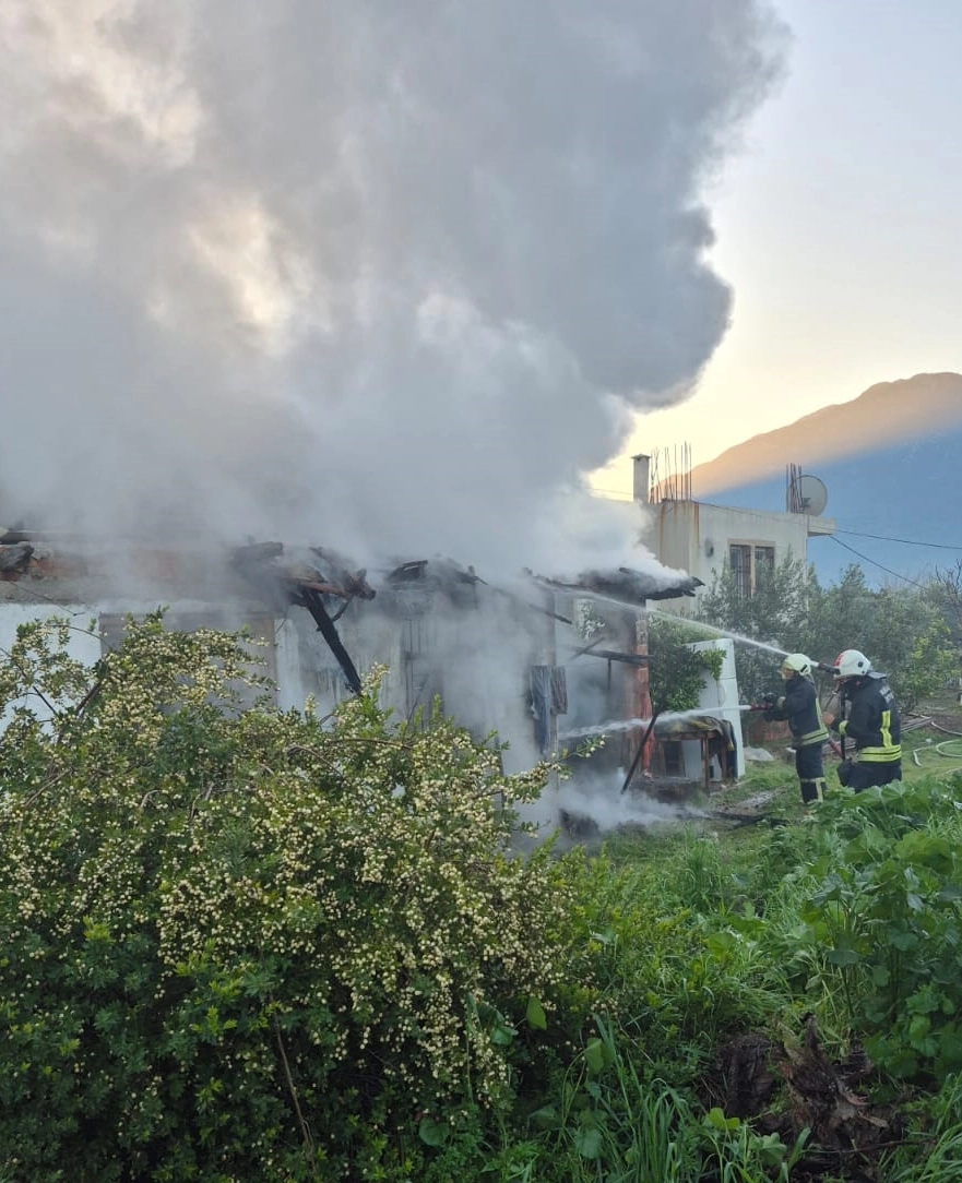 Ekiplerin müdahalesiyle söndürülen yangında, evde büyük çapta hasar oluştu.