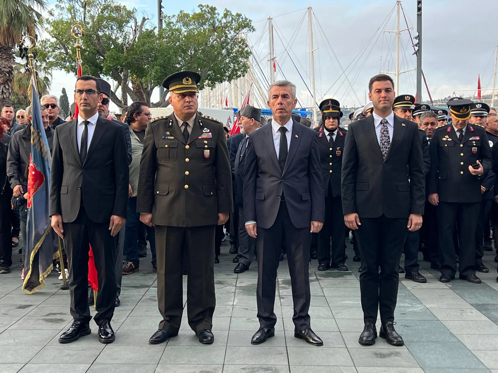 Dalaman Cumhuriyet Meydanı'nda düzenlenen törene, İlçe Kaymakamı Mesut Yakuta, Belediye Başkanı Sezer Durmuş, askeri personel ve vatandaşlar katıldı.