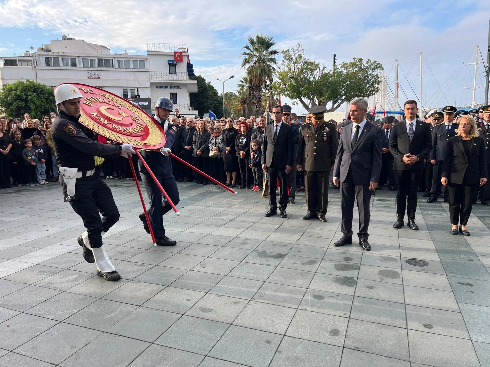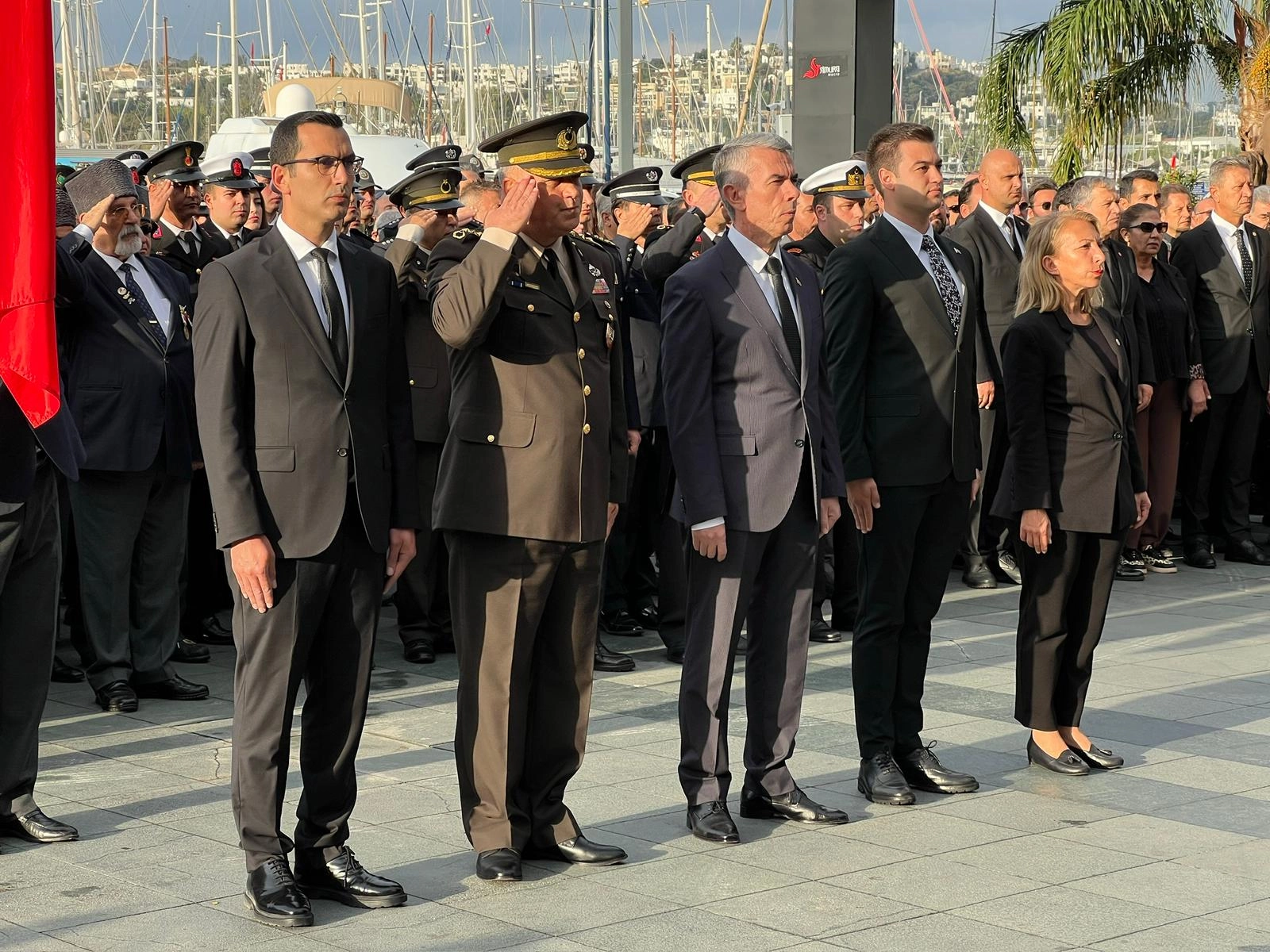 Bodrum ilçesinde sabah saatlerinde Belediye Meydanı'ndaki törene, Bodrum Kaymakamı Ali Sırmalı, CHP Muğla Milletvekili Süreyya Öneş Derici, Belediye Başkanı Tamer Mandalinci, Başsavcı Vekili Sezgin Kılınçcı, Garnizon Komutanı Personel Albay Ayhan Ulutaş, İlçe Emniyet Müdürü Mehmet Darendeli, İlçe Jandarma Komutanı Yarbay Kamil İncebacak'ın da aralarında olduğu gaziler, öğretmenler, öğrenciler ve vatandaşlar katıldı.
