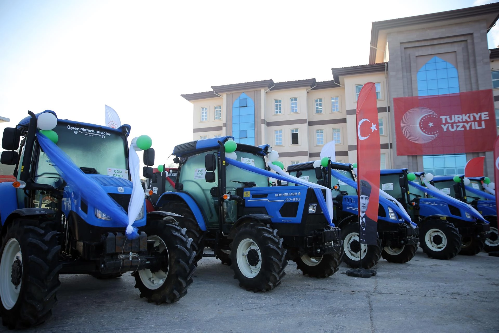 Konuşmaların ardından protokol üyeleri, hak sahiplerine traktörlerin anahtarlarını teslim etti.