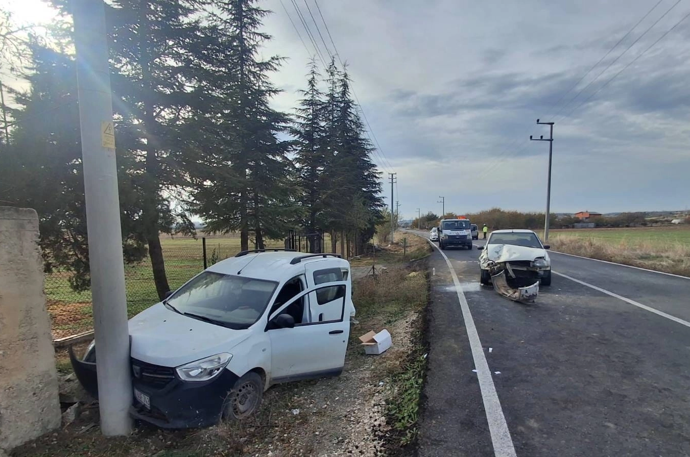 Çarpmanın etkisiyle ilerleyen hafif ticari araç yol kenarındaki elektrik direğine çarparak durabildi.