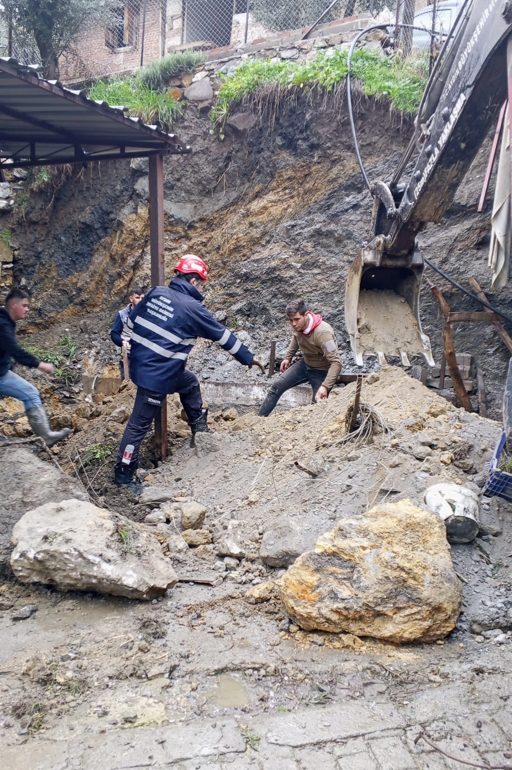 Bunun üzerine iş makinesiyle toprağı kaldırma çalışması başlatıldı.