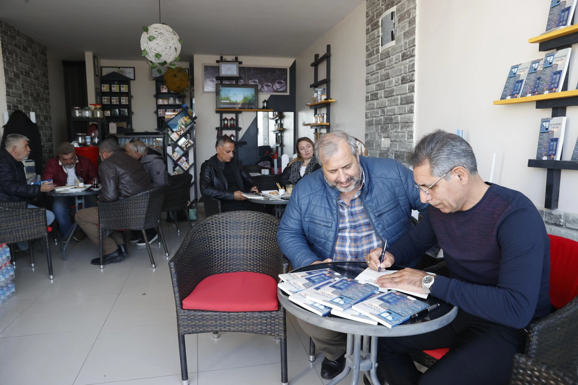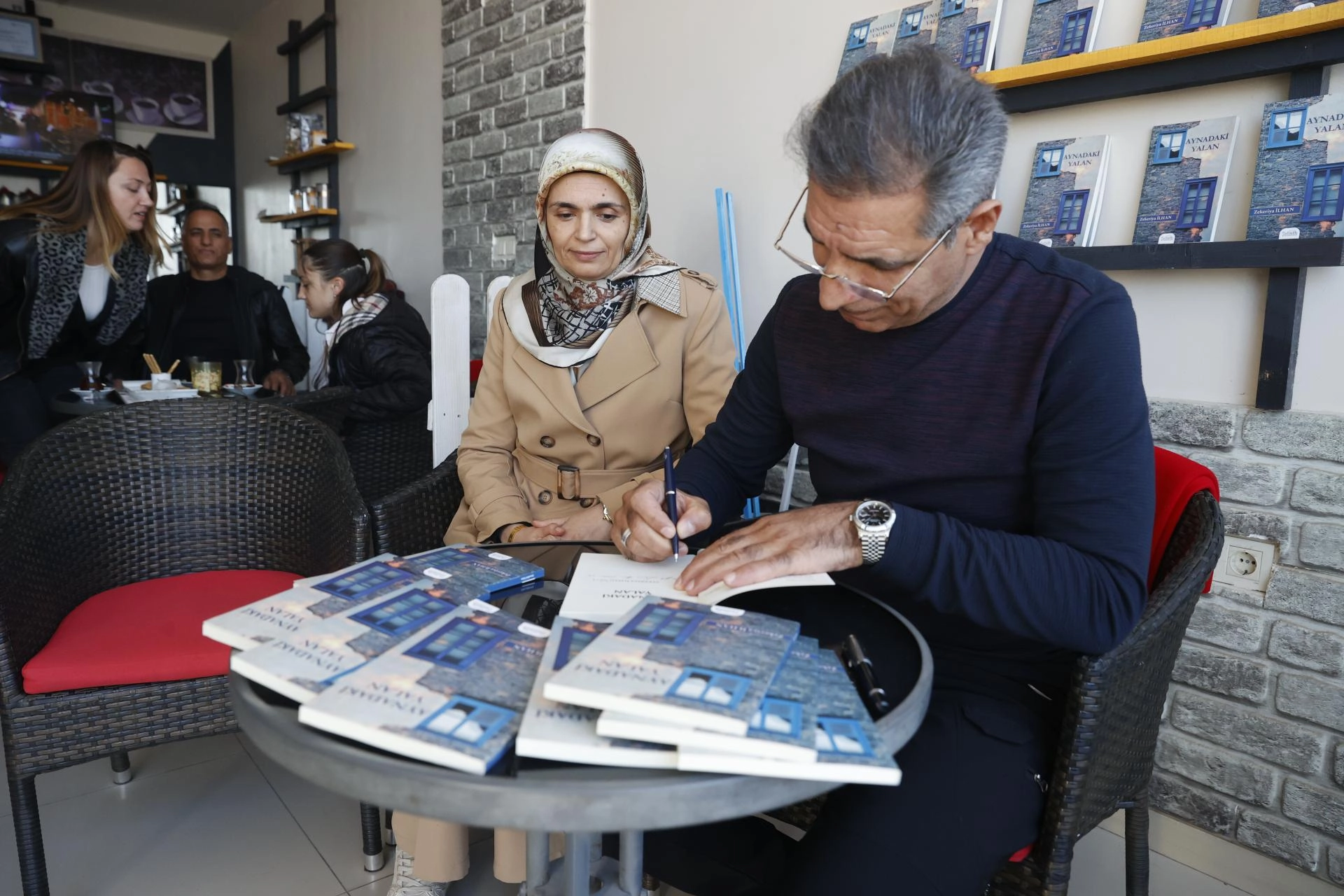 Bodrum İlçe Emniyet Müdürlüğünde görev yapan ve iki yıl önce emekli olan Elazığlı şair polis memuru İlhan, Turgutreis Mahallesi'ndeki bir kafede kitap imza etkinliğine katıldı.