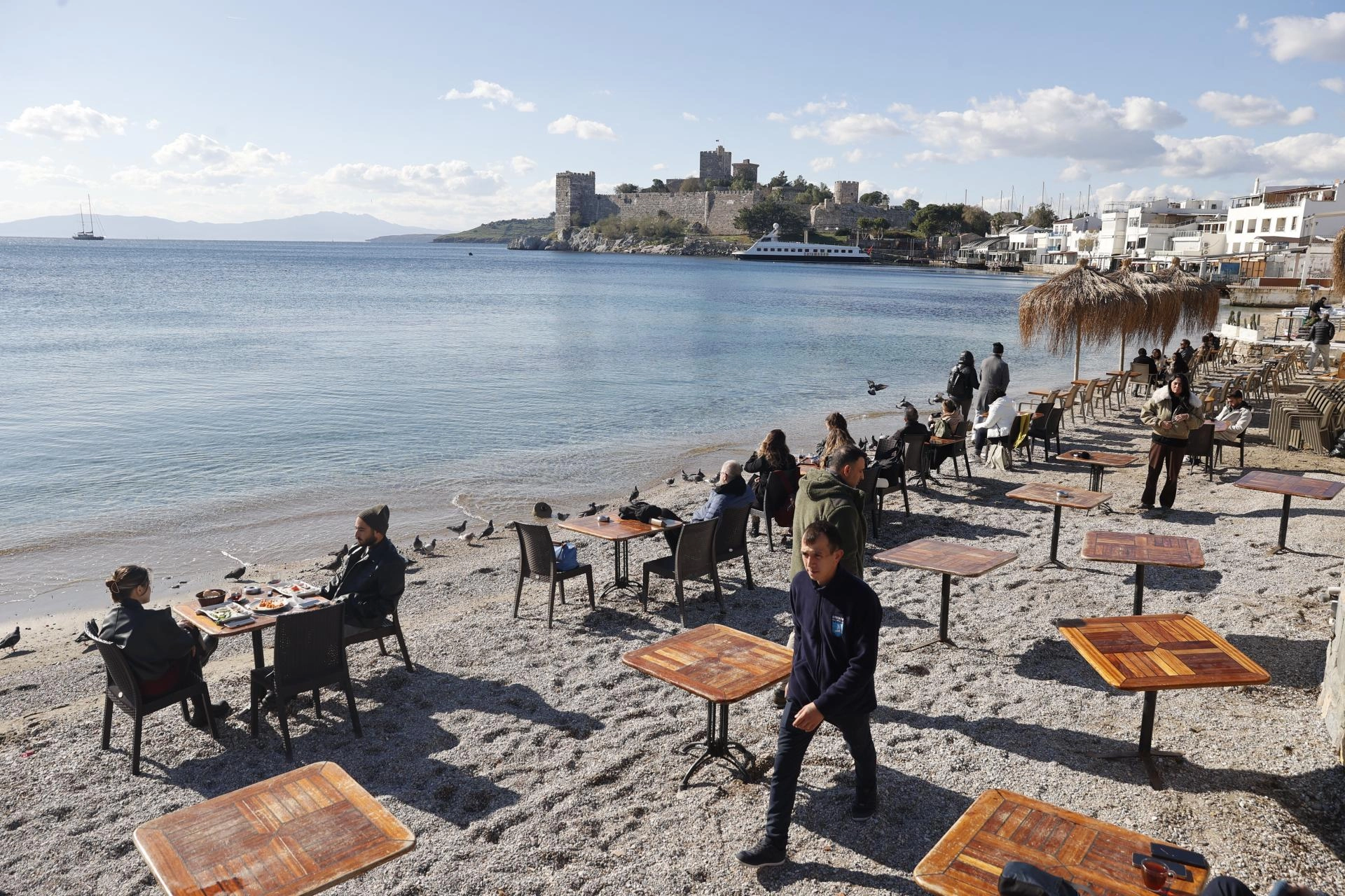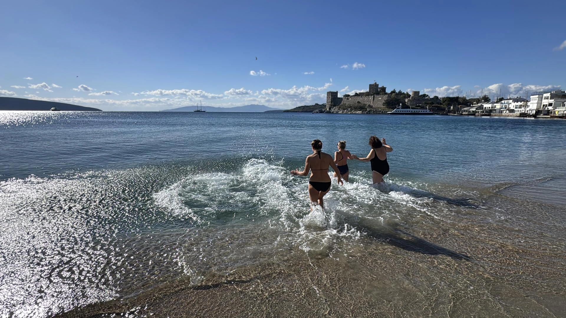MUĞLA (AA) - Muğla'nın gözde turistik ilçesi Bodrum'un sahillerinde yeni yılın ilk gününde güneşli havayı değerlendirmek isteyenler yoğunluk oluşturdu, bazıları denize girdi.