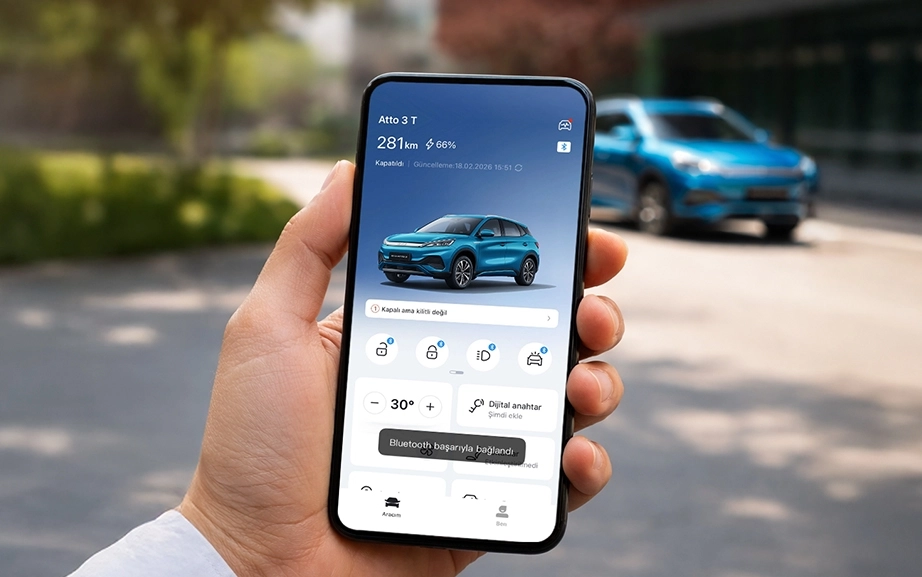 BYD Mobil Uygulaması'nın son güncellemeleri, markanın sadece bir otomobil üreticisi değil, aynı zamanda teknoloji lideri olma vizyonunu bir kez daha pekiştirdi. Kullanıcılar artık dijital anahtar özelliğiyle (2024 model ve sonrası BYD ATTO 3'ler için) fiziksel anahtara ihtiyaç duymadan araçlarına erişebiliyor. Bluetooth Key fonksiyonu ise internet bağlantısı olmaksızın kapı açma, kilitleme ve aracı çalıştırma imkanı sunarak kesintisiz bir deneyim sağlıyor. Uygulamanın akıllı saatlere indirilebilmesiyle kapı kontrolü, klima çalıştırma, batarya ve menzil takibi gibi pek çok işlem bileğinizden yapılabiliyor. Sürekli Over-the-Air (OTA) güncellemelerle en yeni özelliklere anında erişim sağlayan BYD Mobil Uygulaması, kullanıcı geri bildirimleriyle şekillenmeye devam ediyor. Bu gelişmelerle BYD, sürücülerine akıllı, bağlantılı ve sürdürülebilir bir gelecek vaat ediyor.