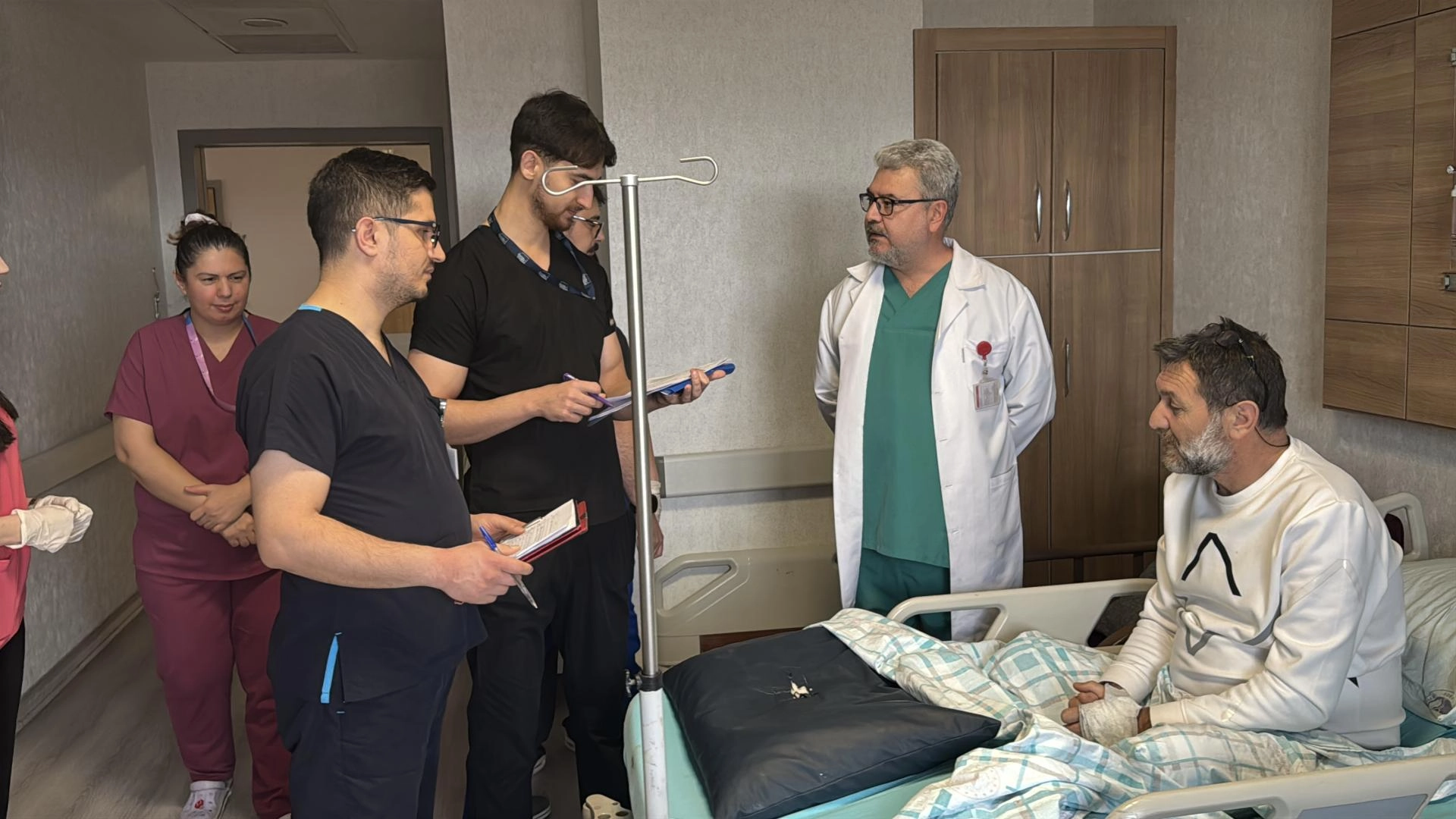 Hastanın bir hafta önce kendilerine geldiğini anlatan Uyar, "Ayak damarlarına girişimsel radyoloji ünitesiyle baktık. Damarların sağlam olduğunu gördük. Hastanın sağ ayağındaki orta parmağı ampute ettik. Hastanın durumu gayet iyi. Bu yarayı tedavi etmeseydik eğer, enfeksiyon ayağının tamamına yayılırdı. Ayağı kaybetmeye kadar gidecek süreçleri görürdük. Hastamızın tedavisini tamamlamak üzereyiz." ifadesini kullandı.