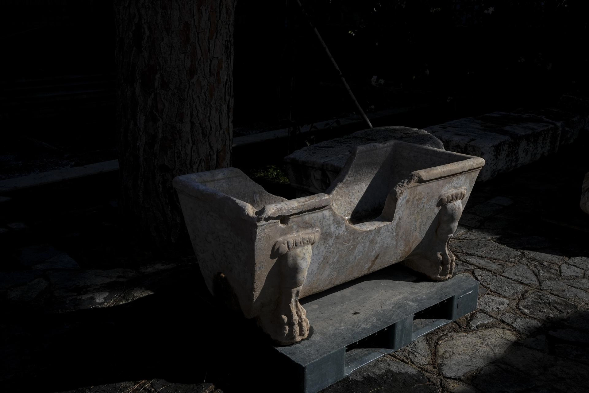 Bölgesel bir mermer türü olan "Greco Scritto"dan imal edilen küvet, 146 x 73 santimetre uzunluğa ve 60 santimetre yüksekliğe sahip.