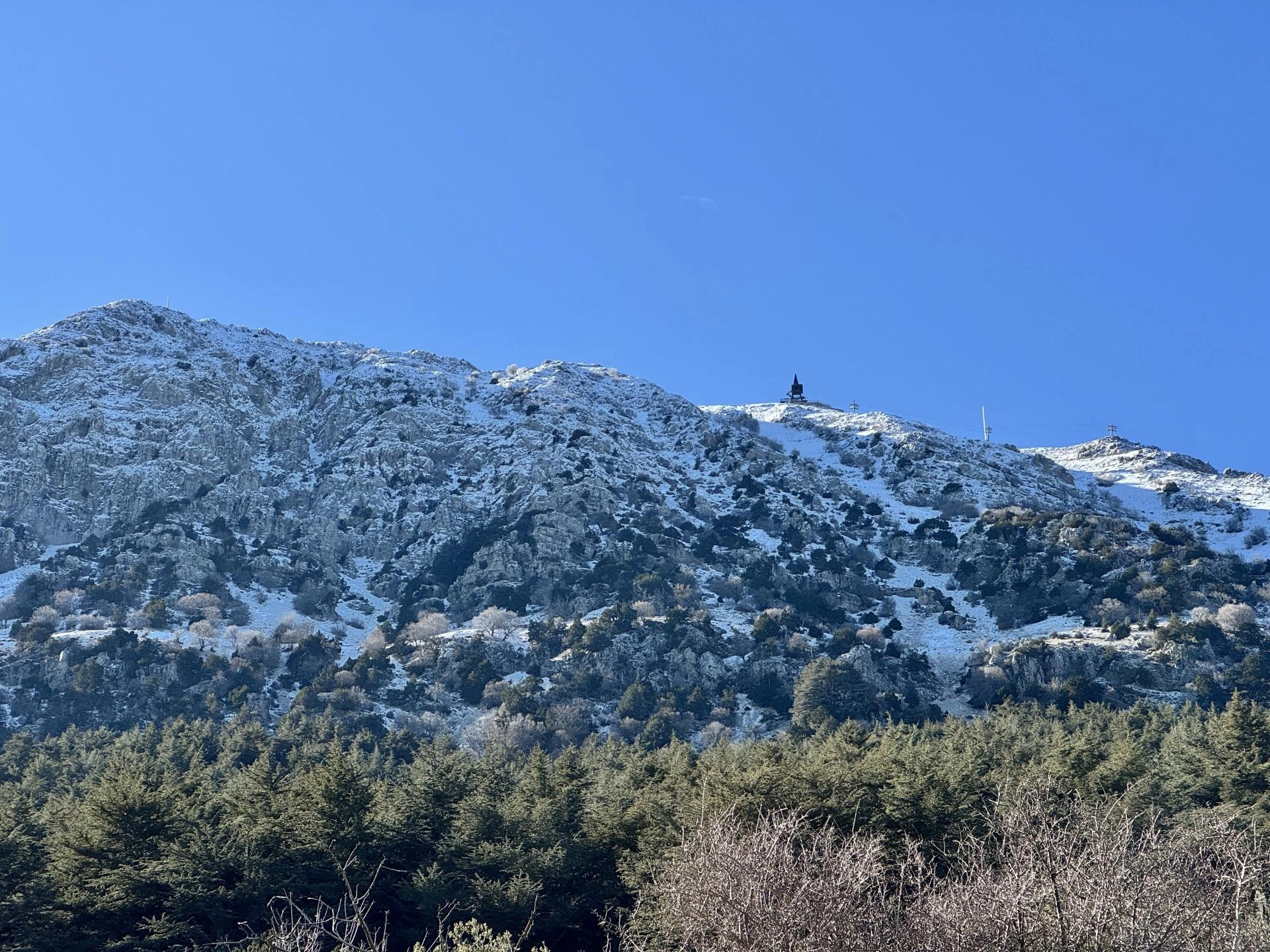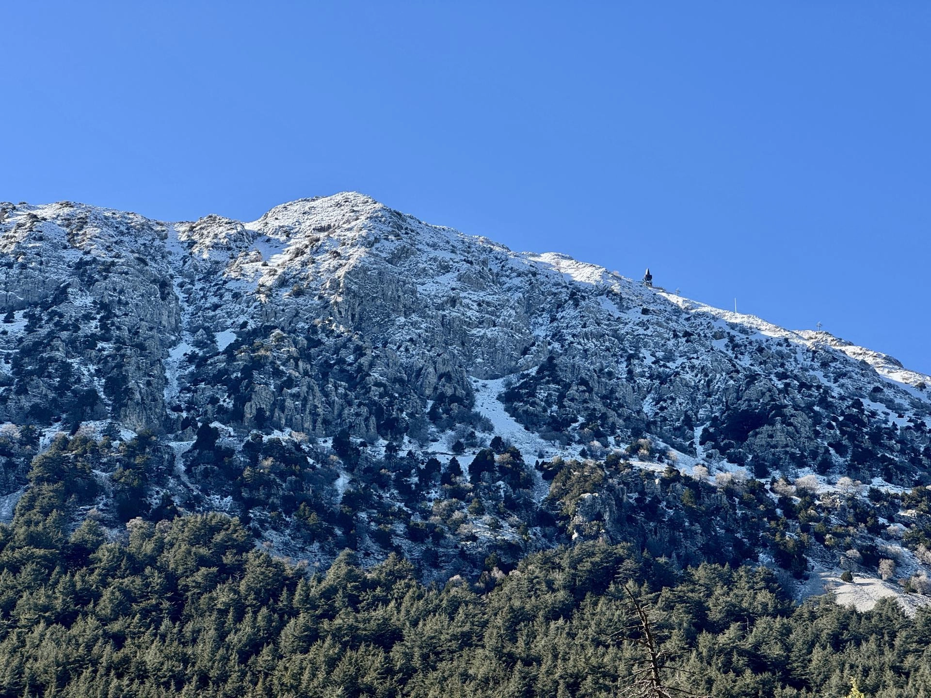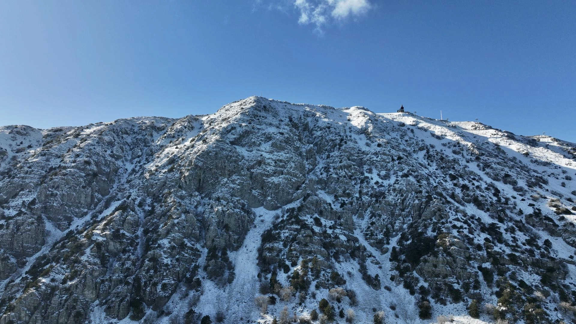 İlçeye yaklaşık 30 kilometre mesafedeki dağın karla kaplı manzarası kent merkezinden de görüldü.