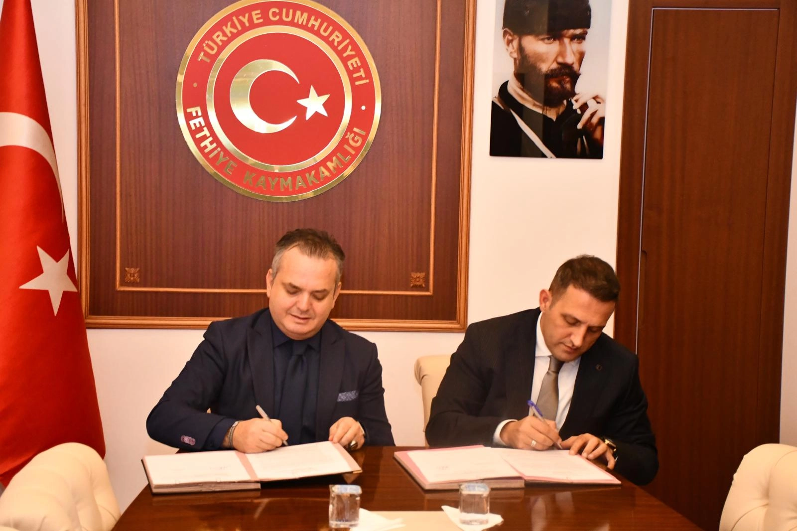 Yükümlülerin ücretsiz kamu hizmeti kapsamında Kaymakamlık birimlerinde çalıştırılması için işbirliği protokolü, Kaymakam Fatih Akkaya ile Fethiye Cumhuriyet Başsavcısı Günşafak Karartı tarafından imzalandı.