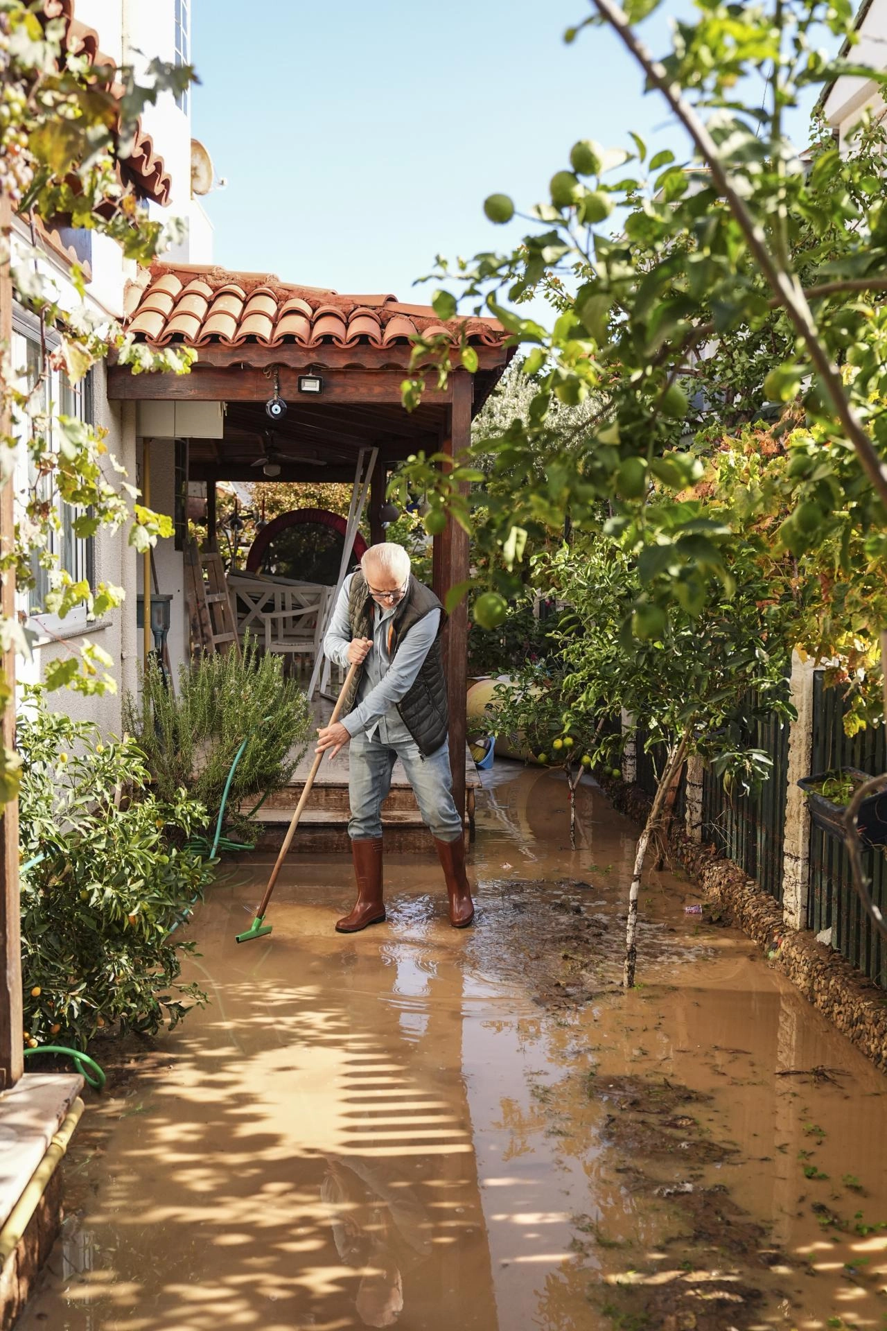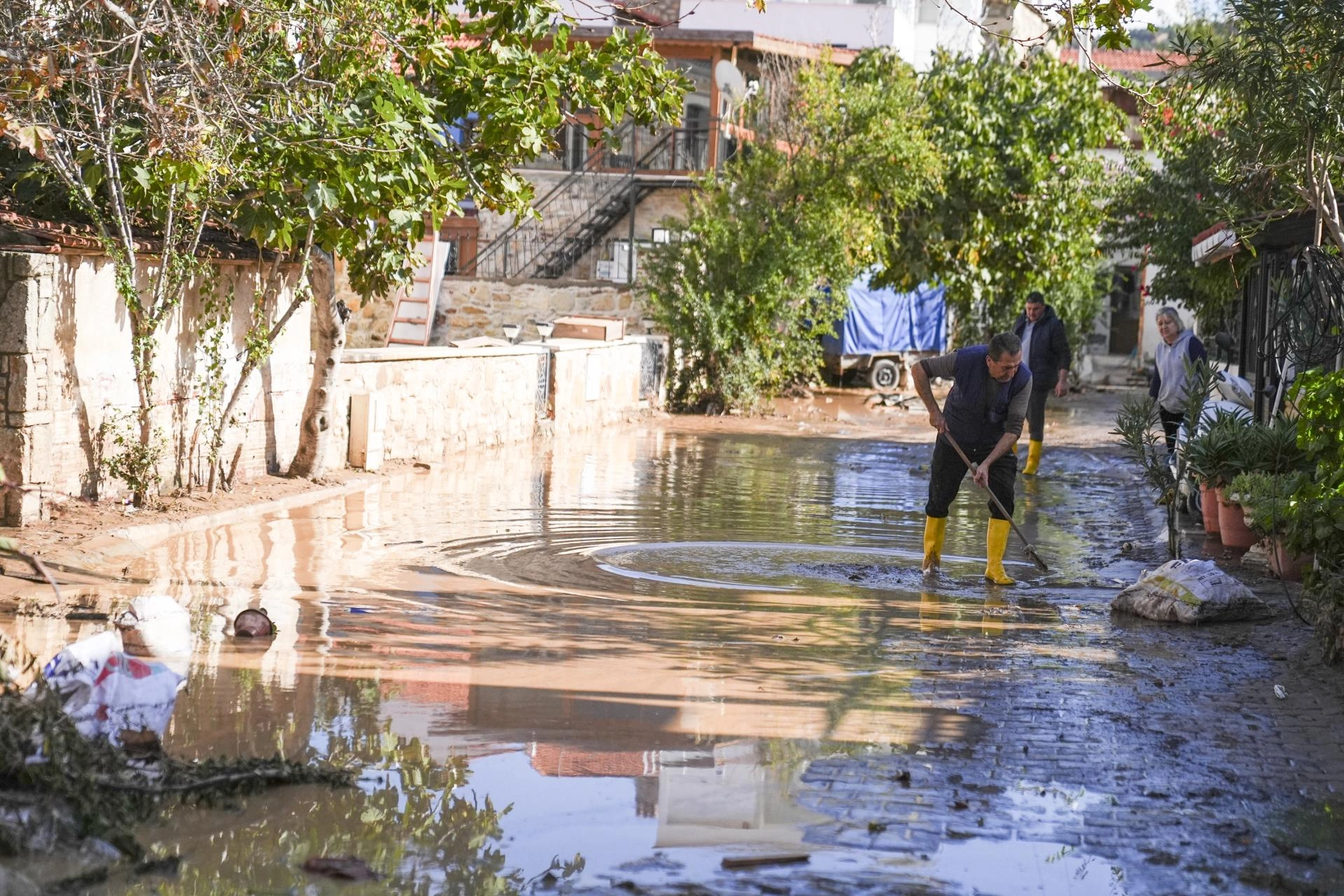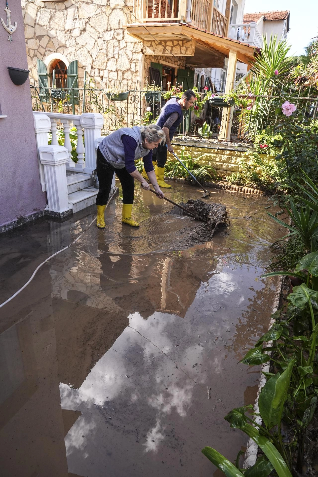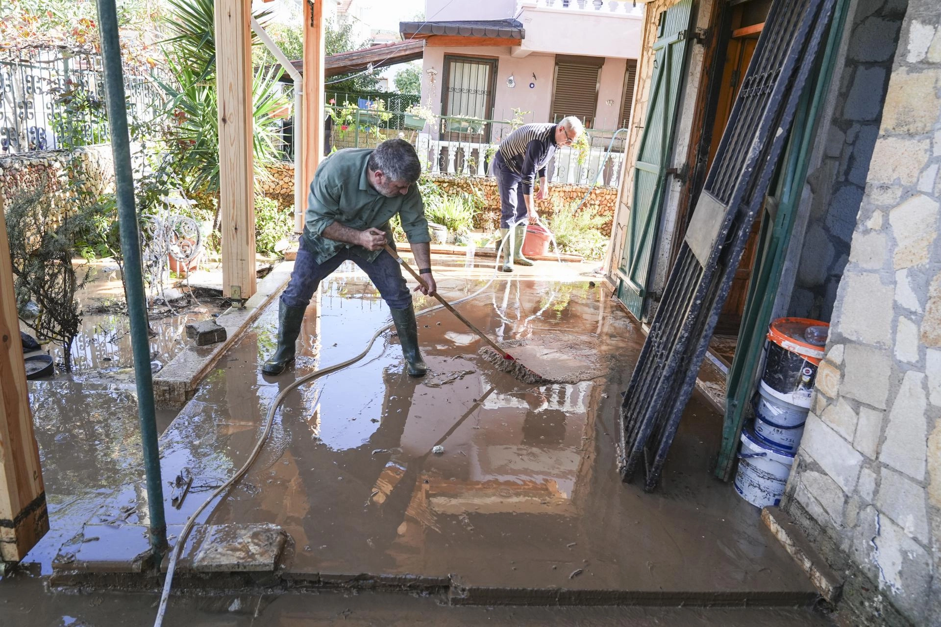 Bazı vatandaşlar ise kendi imkanlarıyla su basan ev ve iş yerlerini temizlemeye çalıştı.