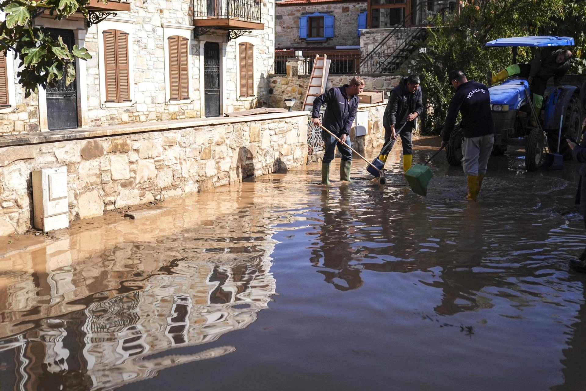 İzmir'in Foça ilçesinde etkili olan sağanak yağış, dere taşmasına neden olarak birçok ev ve iş yerinin su altında kalmasına yol açtı. Sabah saatlerinde başlayan ve şiddetini artıran yağış, cadde ve sokaklarda su birikintilerine neden olurken, araçlar yollarda ilerlemekte güçlük çekti. İtfaiye ekipleri su tahliye çalışmalarına başlarken, mahalle sakinleri derenin tıkanması sonucu yaşanan bu felakete yetkililerin bir an önce çözüm bulmasını talep ediyor. Fevzi Çakmak Mahallesi sakinlerinden Hanifi Canlı, yaşadıkları mağduriyeti dile getirerek, yetkililerden acil yardım beklediklerini vurguladı. Yaşanan bu olayın ardından Foça'da hasar tespit çalışmaları başlatılması ve mağdur vatandaşlara gerekli desteğin sağlanması bekleniyor.