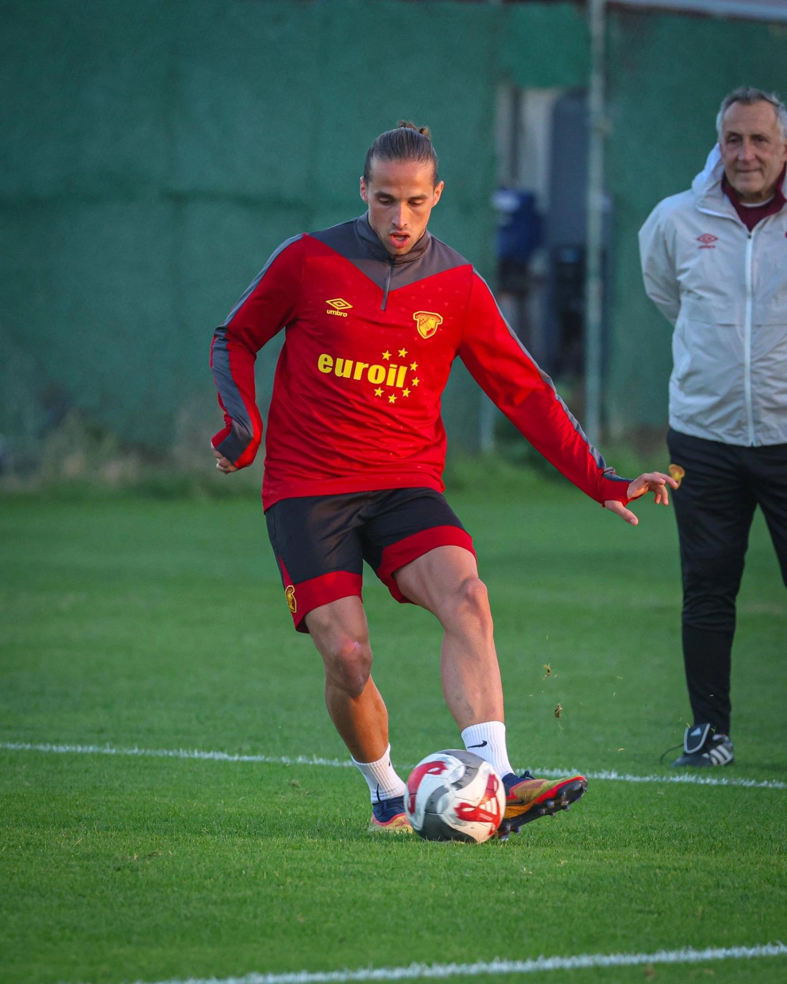 Kulübün açıklamasına göre, Urla Adnan Süvari Tesisleri'nde teknik direktör Stanimir Stoilov yönetimindeki antrenman, ısınma çalışmalarıyla başladı. Antrenmanın ilk bölümünde 5'e 2 pas ve top kapma çalışması yapan sarı-kırmızılılar, ikinci bölümde ise dar alanda oyun oynadı.