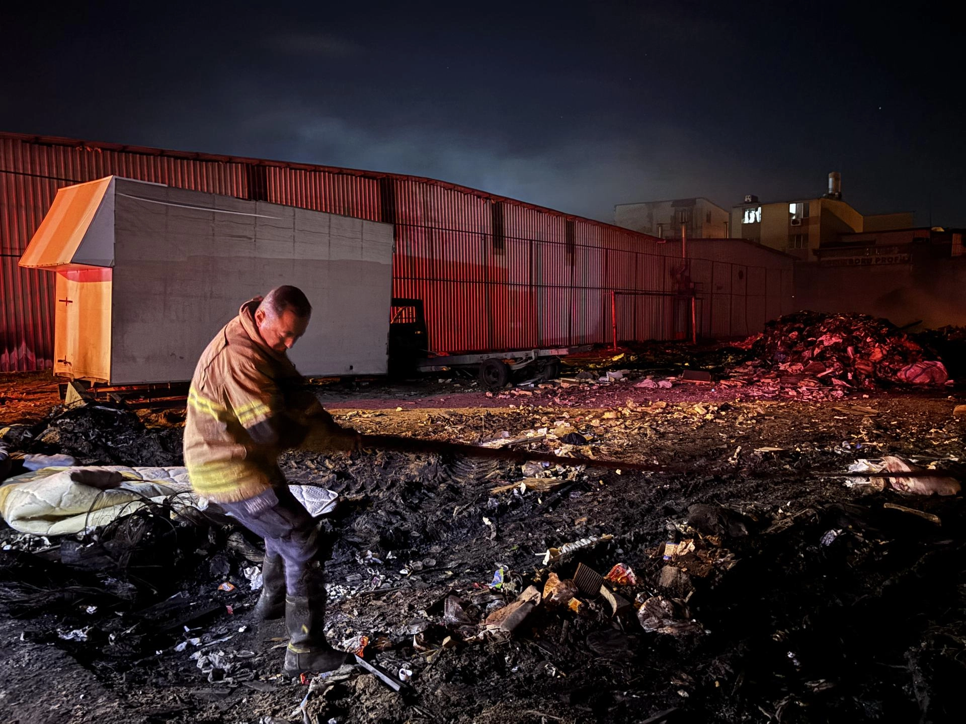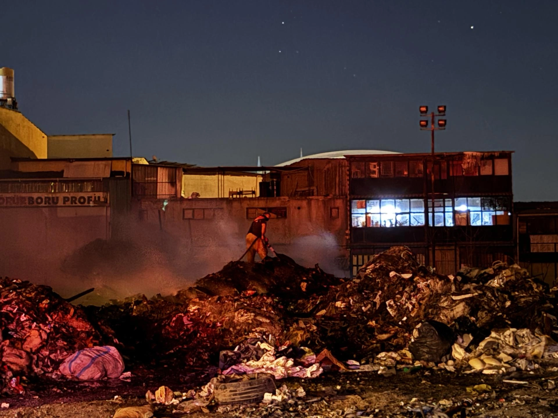Seyhan Mahallesi 718. Sokak'taki plastik, tekstil ürünleri ve moloz birikintilerinin bulunduğu alanda henüz belirlenemeyen nedenle yangın çıktı.