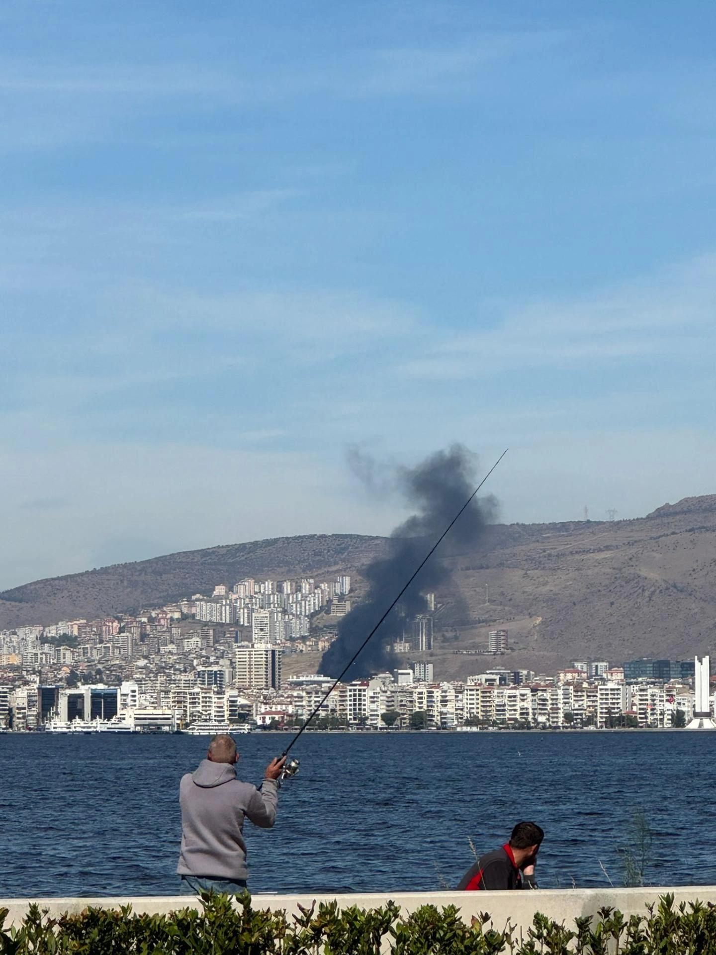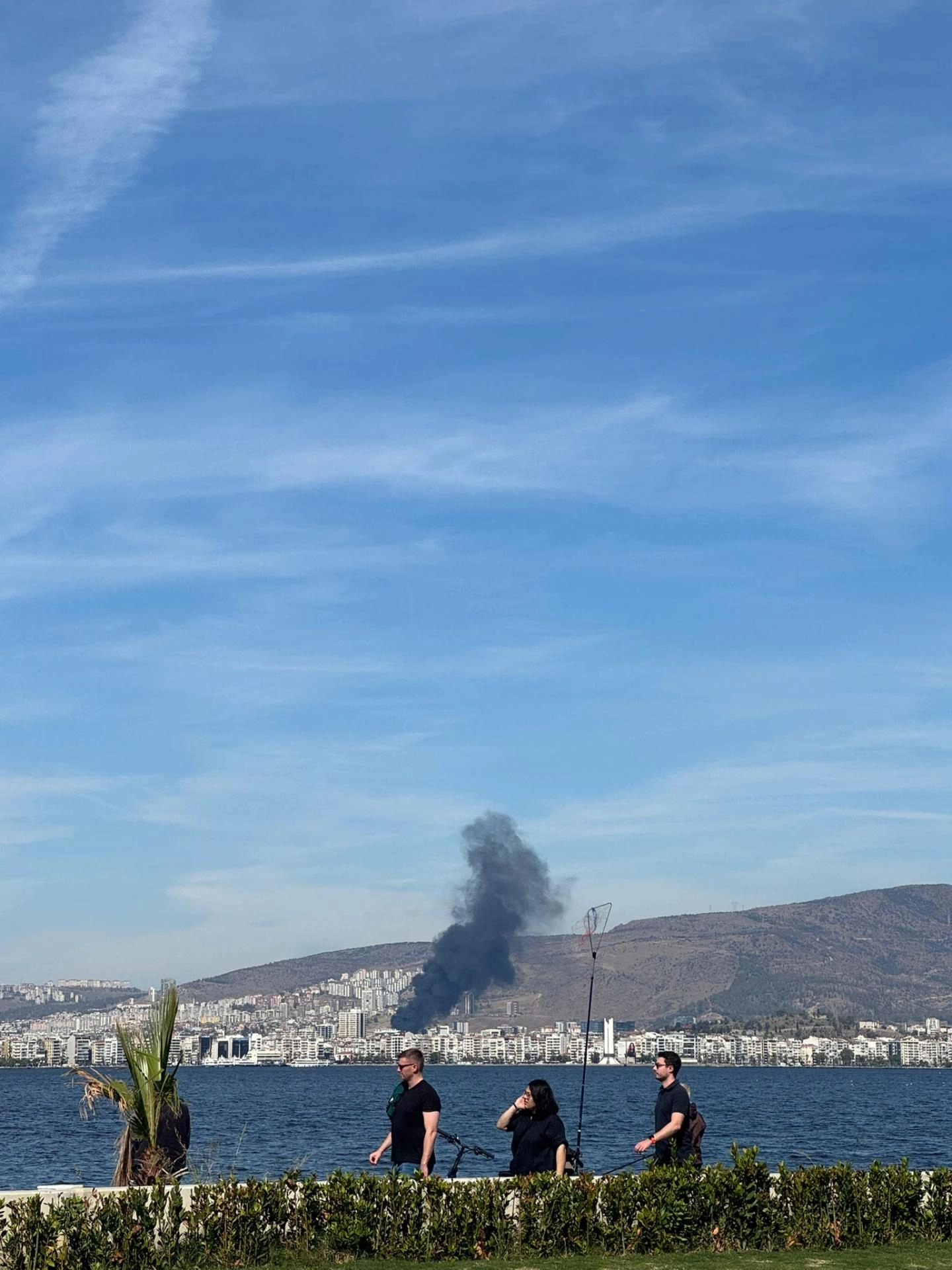 Yangın nedeniyle gökyüzünü siyah duman kapladı. Duman körfezin karşı kıyısı ve kentin farklı noktalarından görüldü.