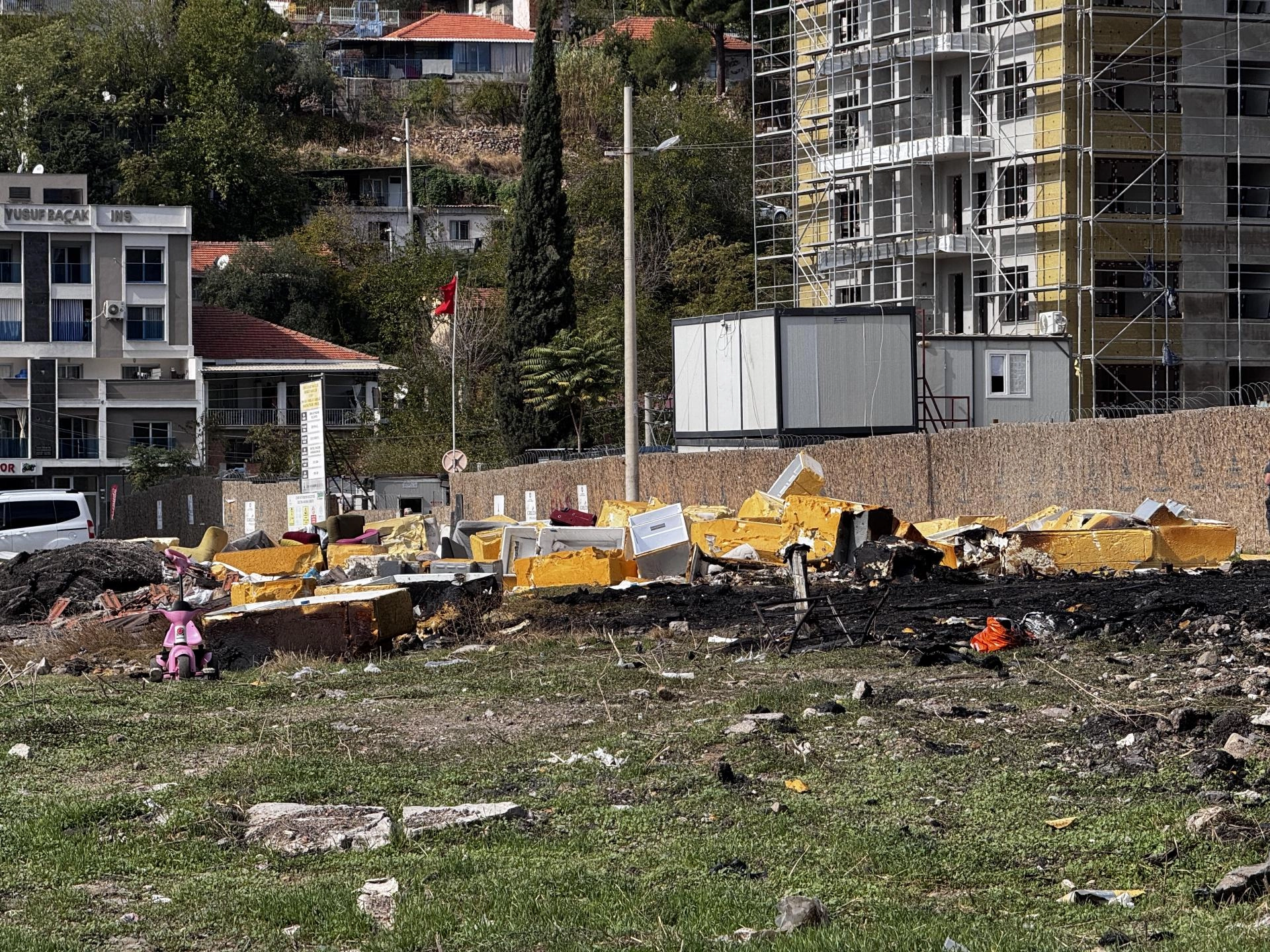 İzmir'in Karşıyaka ilçesi Örnekköy Mahallesi'nde meydana gelen yangın, kullanılmayan strafor malzemelerinin biriktiği alanda başladı. İhbar üzerine olay yerine sevk edilen itfaiye ekipleri, yangını çevreye yayılmadan söndürmeyi başardı. Yangın nedeniyle oluşan yoğun duman, körfezin karşı kıyısından ve kentin farklı bölgelerinden görülebildi. Yetkililer, yangının çıkış nedenini belirlemek için inceleme başlattı ve benzer olayların yaşanmaması için gerekli önlemlerin alınacağını belirtti.