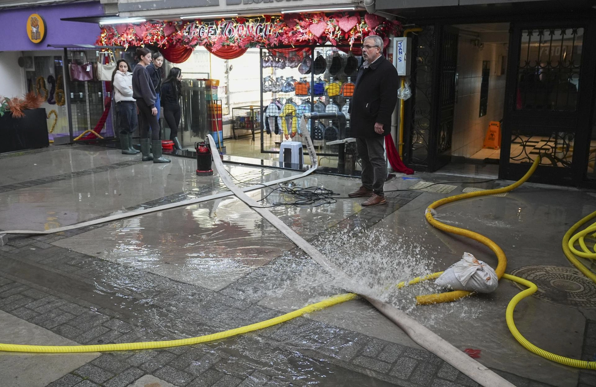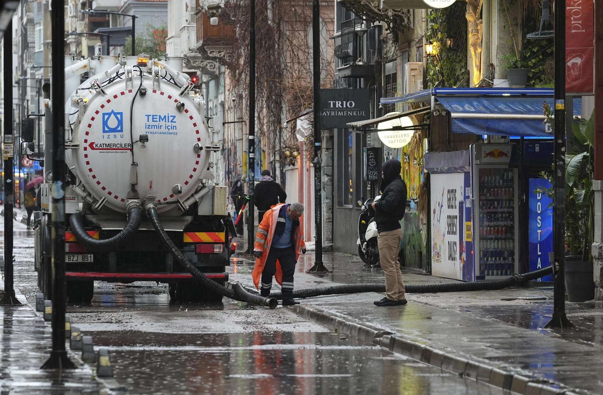 İzmir Su ve Kanalizasyon İdaresi Genel Müdürlüğü (İZSU) ekipleri, Kemeraltı Çarşısı'nda tıkanan rögarları temizledi. Ekipler, yolda ilerlemekte güçlük çeken bazı vatandaşları araç kasasına alarak yolun karşısına geçirdi.
