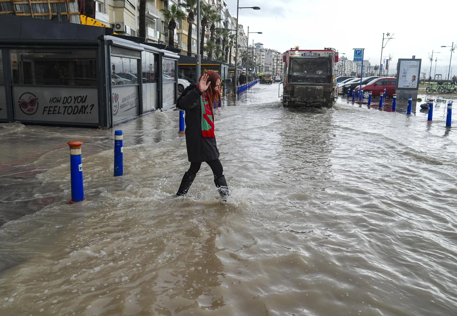 İZMİR (AA) - İzmir'de etkili olan sağanak, yaşamı olumsuz etkiledi.
