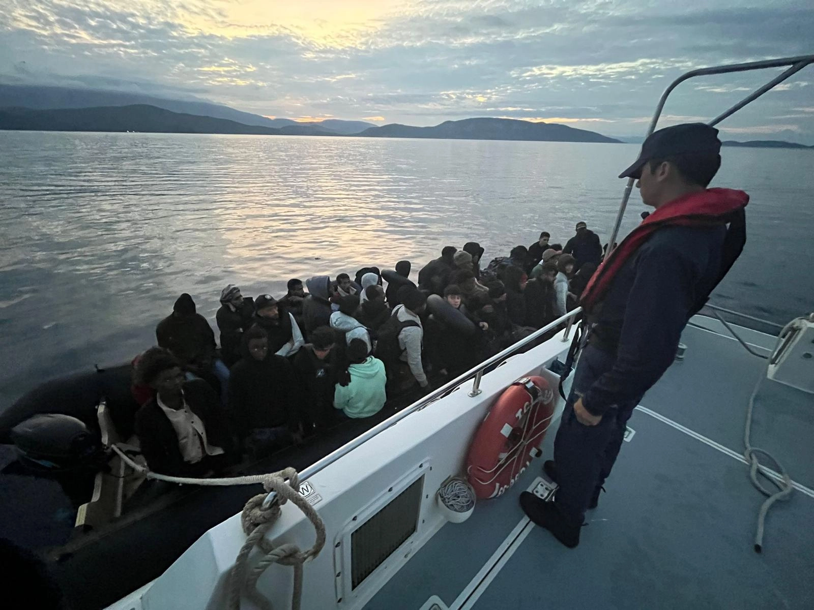 İZMİR (AA) - İzmir'in Karaburun ilçesi açıklarında motor arızası nedeniyle sürüklenen lastik bottaki 41 düzensiz göçmen kurtarıldı, Dikili ilçesi açıklarında 31 düzensiz göçmen yakalandı.
