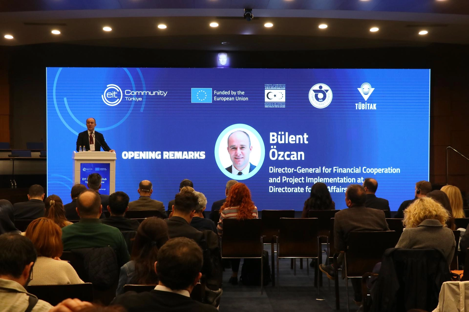 İzmir Ticaret Odası (İZTO) Çok Amaçlı Toplantı Salonu'ndaki programda konuşan Avrupa Birliği Başkanlığı Mali İşbirliği ve Proje Uygulama Genel Müdürü Bülent Özcan, Ufuk Avrupa programının inovasyon ve teknolojiye yatırım anlamında önemli olduğunu belirtti.