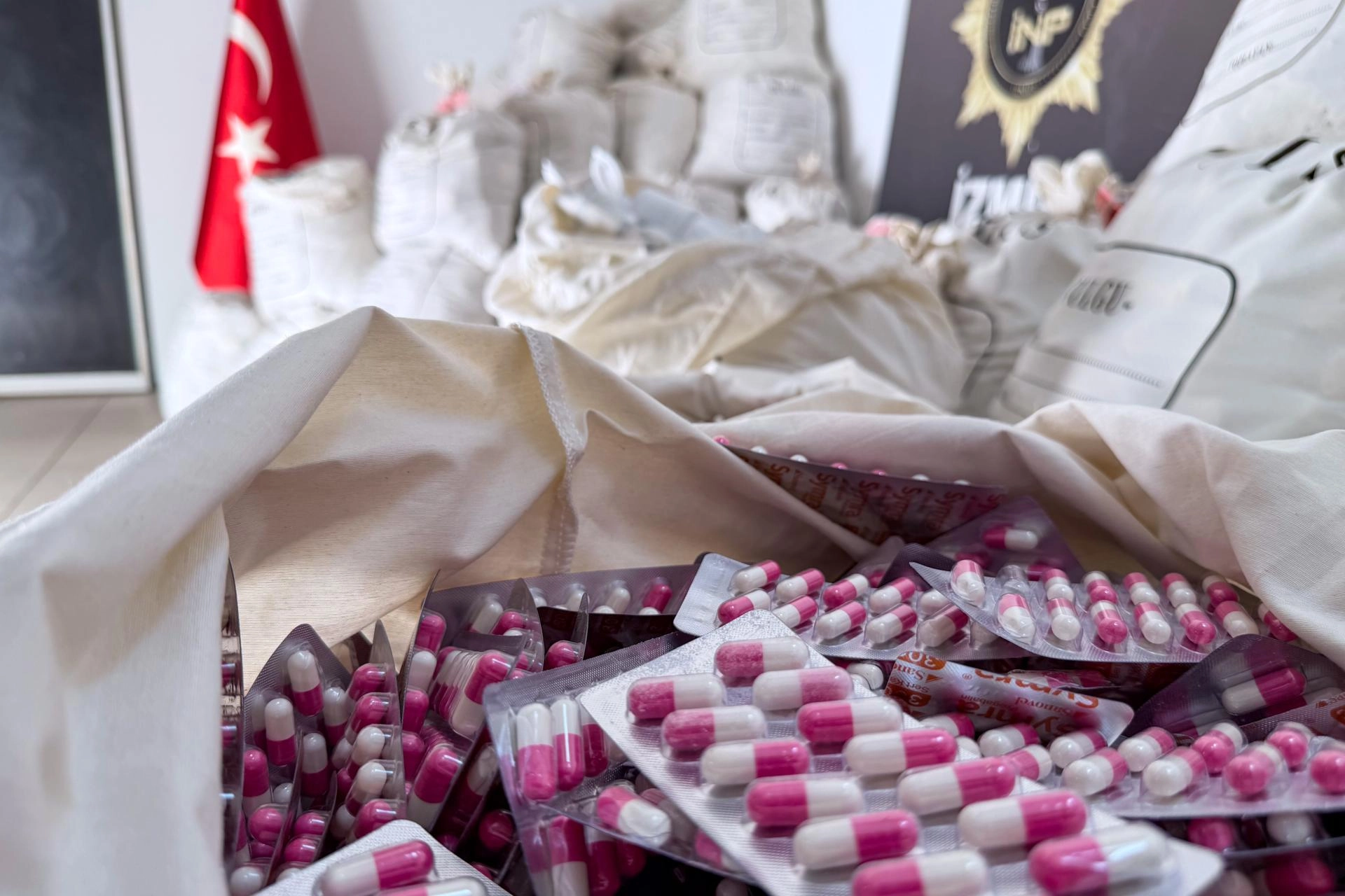 Operasyonda ele geçirilen uyuşturucu hap sayısının, İzmir'de tek seferde ele geçirilen en yüksek hap miktarı olduğu belirtildi.