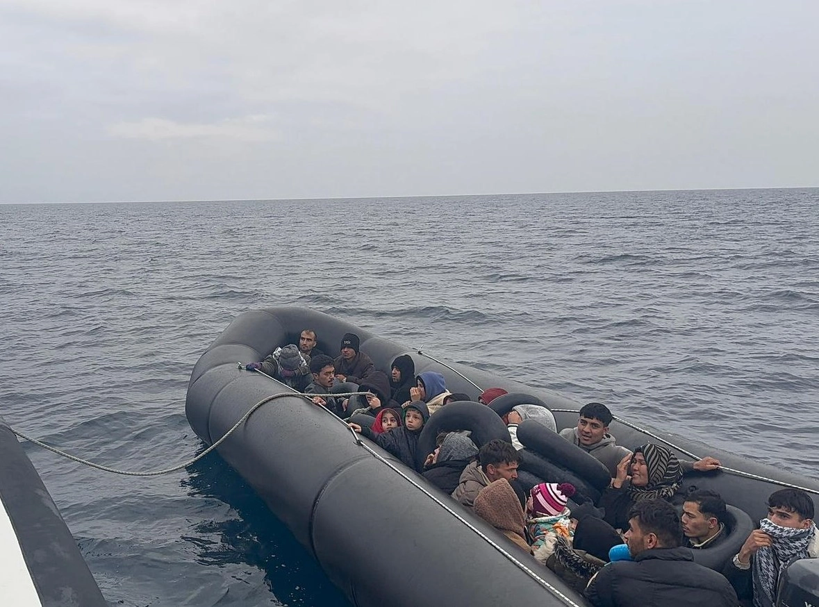 Sahil Güvenlik ekipleri, lastik bottaki 16'sı çocuk 30 düzensiz göçmeni kurtardı.