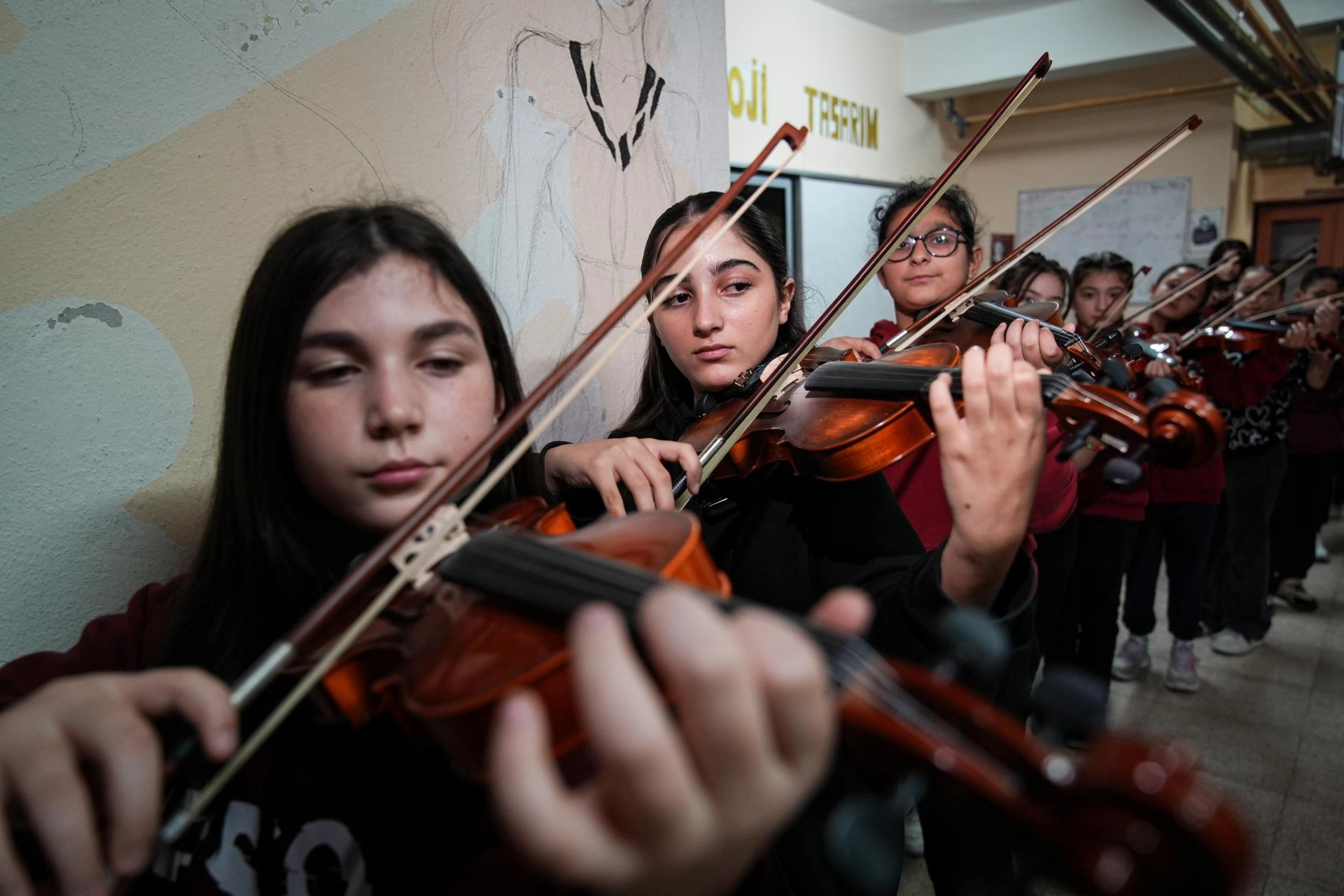 Keman kursuna katılan 6. sınıf öğrencisi Rabia Nergiz Çevik, kurs sayesinde hem müzik yeteneğini keşfettiğini hem de farklı sınıflardan arkadaşlar edindiğini anlattı.