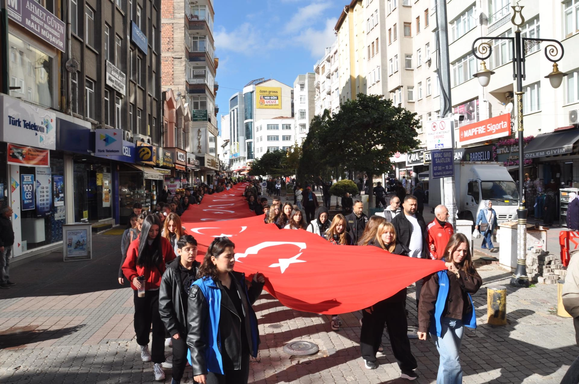 Gençlik ve Spor İl Müdürlüğünce düzenlenen programda sporcular ve katılımcılar, Cumhuriyet Caddesi’nden Zafer Meydanı’na kadar yürüdü.