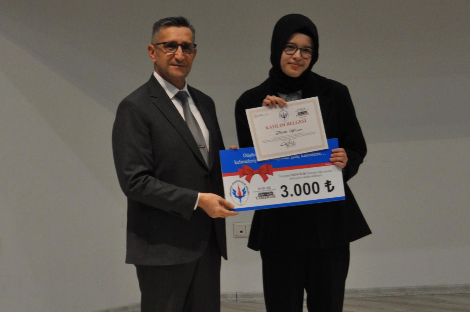 Yarışmada Nuri Sarıışık Mansiyon Ödülüise Necip Fazıl Kısakürek Anadolu Lisesi’nden Aybike Kahiar Mohammad’a verildi.