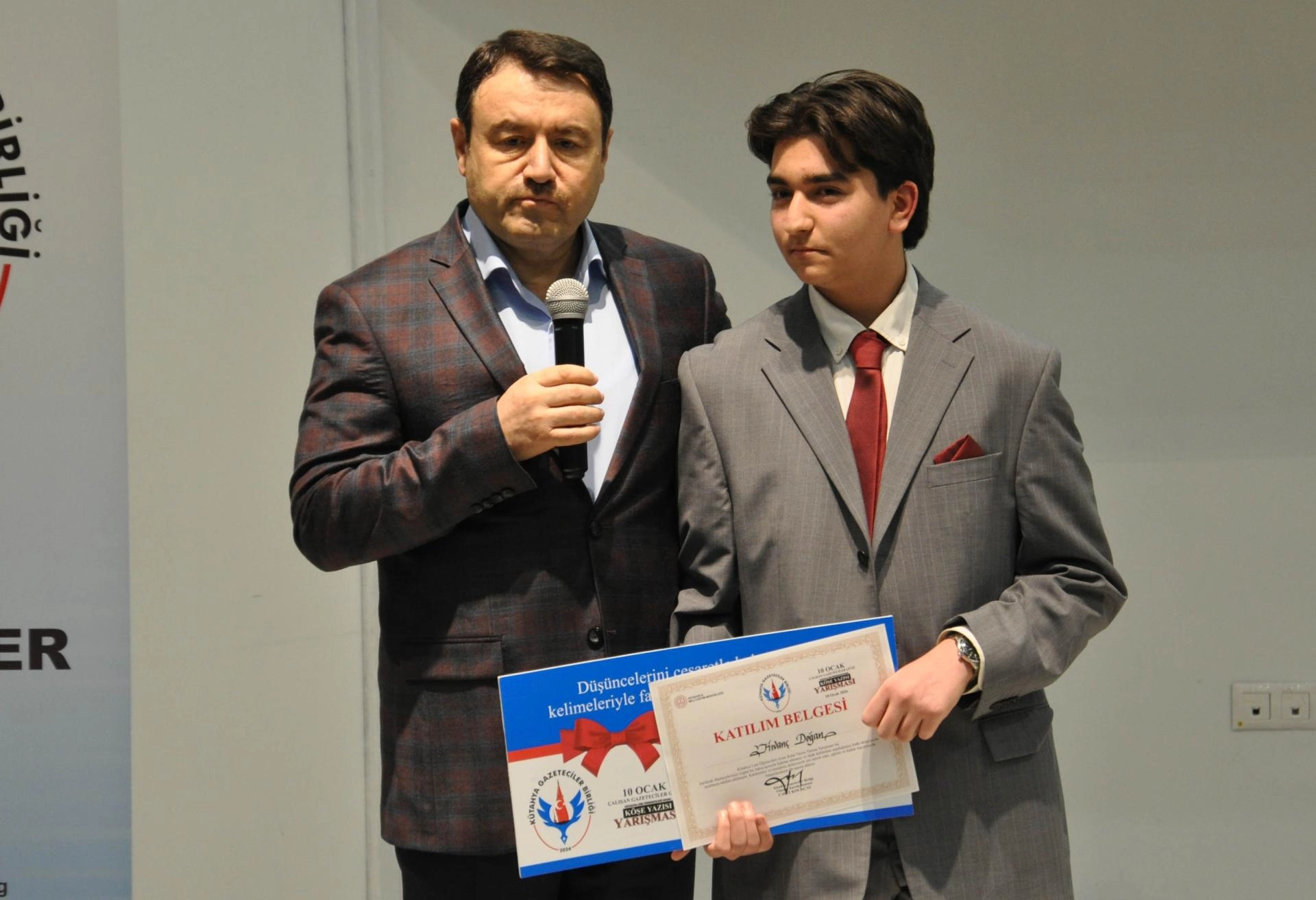 KÜTAHYA (AA) - Kütahya Gazeteciler Birliği tarafından bu yıl ilk kez düzenlenen lise öğrencileri arası “Köşe Yazarlığı” yarışmasında dereceye giren öğrenciler, düzenlenen törenle ödüllerini aldı.