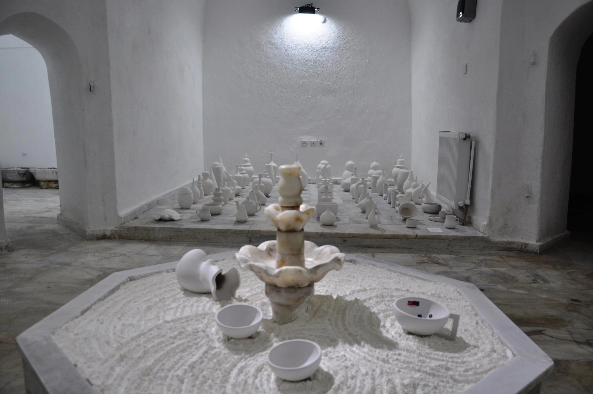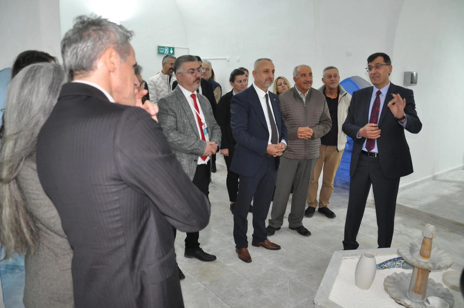 Proje kapsamında tarihi hamamda, çini eserlerden oluşan sergi açıldı.