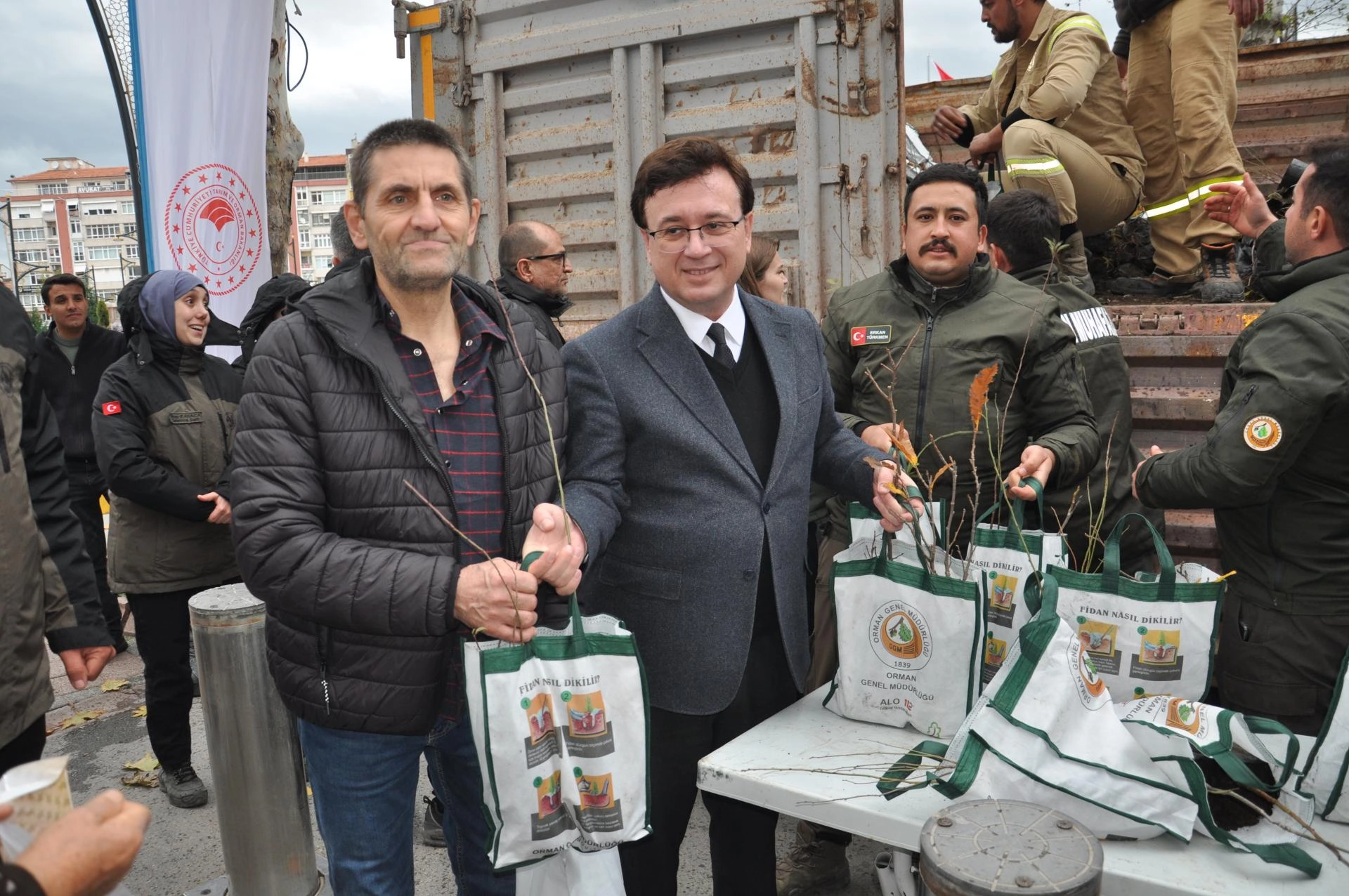 Vali Yardımcıları Süleyman Ovalı, Harun Kazez ve Kütahya Orman Bölge Müdürü Erdal Dingil'in dağıttığı fidanlar kısa sürede tükendi.