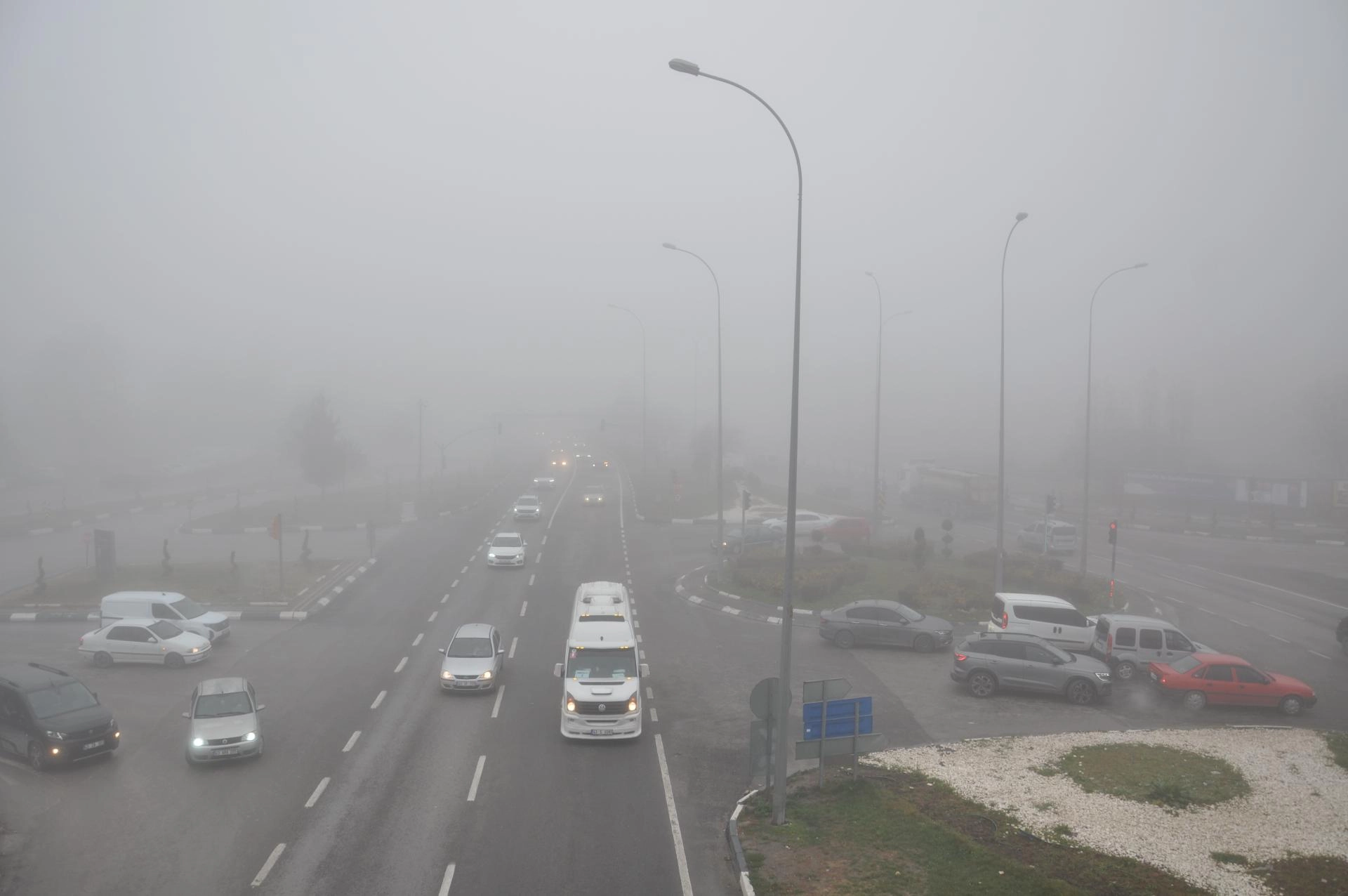 Kent merkezinde gece yarısından itibaren görülen yoğun sis, sabah da etkisini sürdürdü.