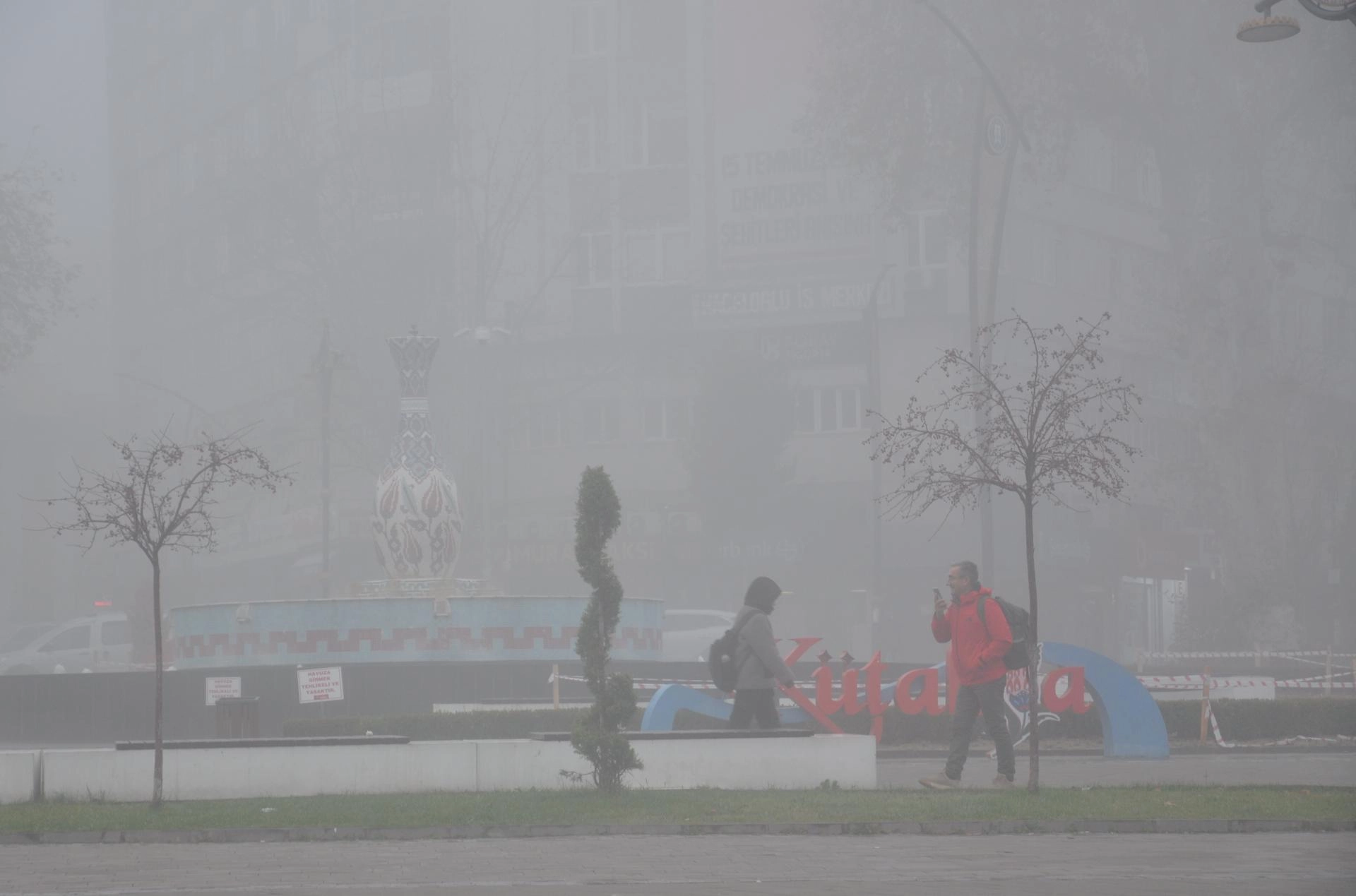 KÜTAHYA (AA) - Kütahya'da yoğun sis nedeniyle görüş mesafesi azaldı.