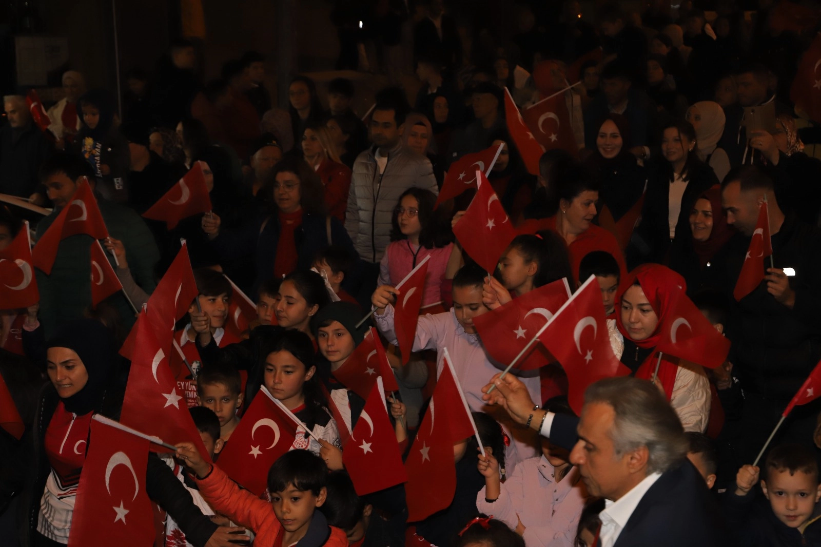 Katılımcılar, ellerinde Türk bayrakları ve meşalelerle Cumhuriyet coşkusunu yaşadı.