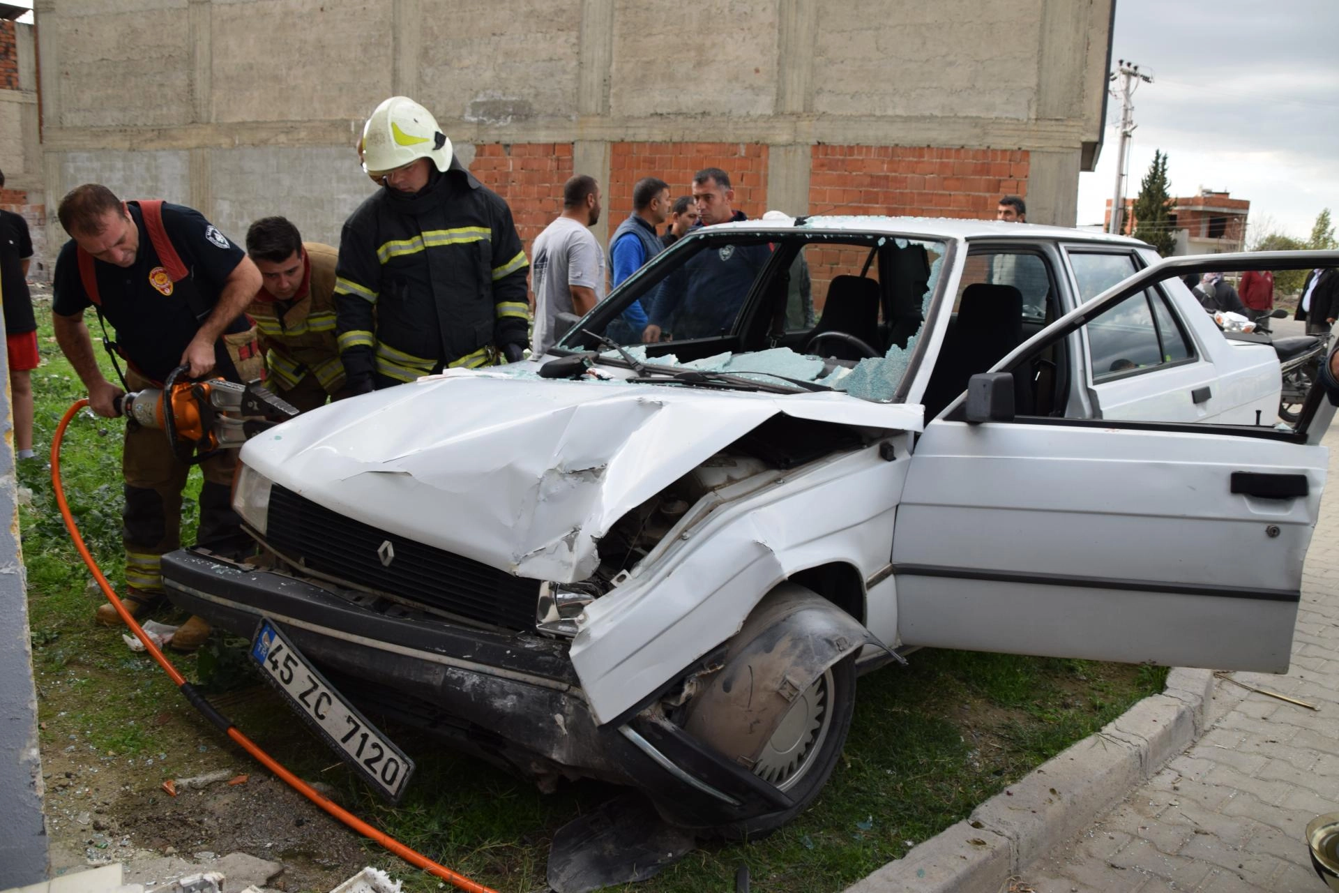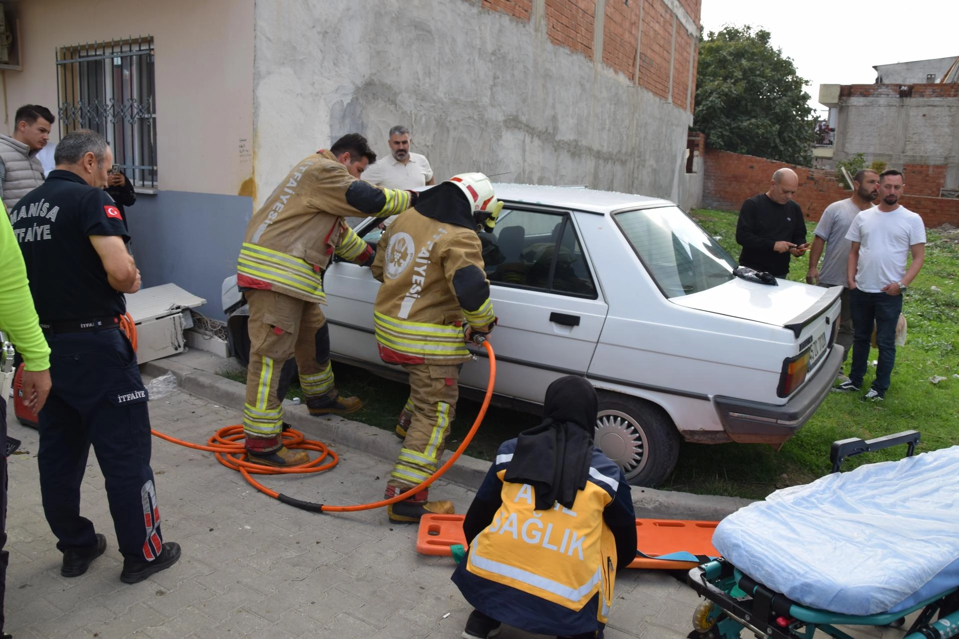 Manisa'nın Turgutlu ilçesi Bozkurt Mahallesi'nde meydana gelen olayda, İbrahim Var yönetimindeki 45 ZC 7120 plakalı otomobil, Özgün Sokak'ta bir evin duvarına çarptı. İhbar üzerine olay yerine itfaiye, sağlık ve polis ekipleri sevk edildi. Araçta sıkışan sürücü İbrahim Var, itfaiye ekiplerince kurtarılarak, oğlu Metin Var ile birlikte Turgutlu Devlet Hastanesi'ne kaldırıldı. Kazayla ilgili soruşturma başlatıldı.