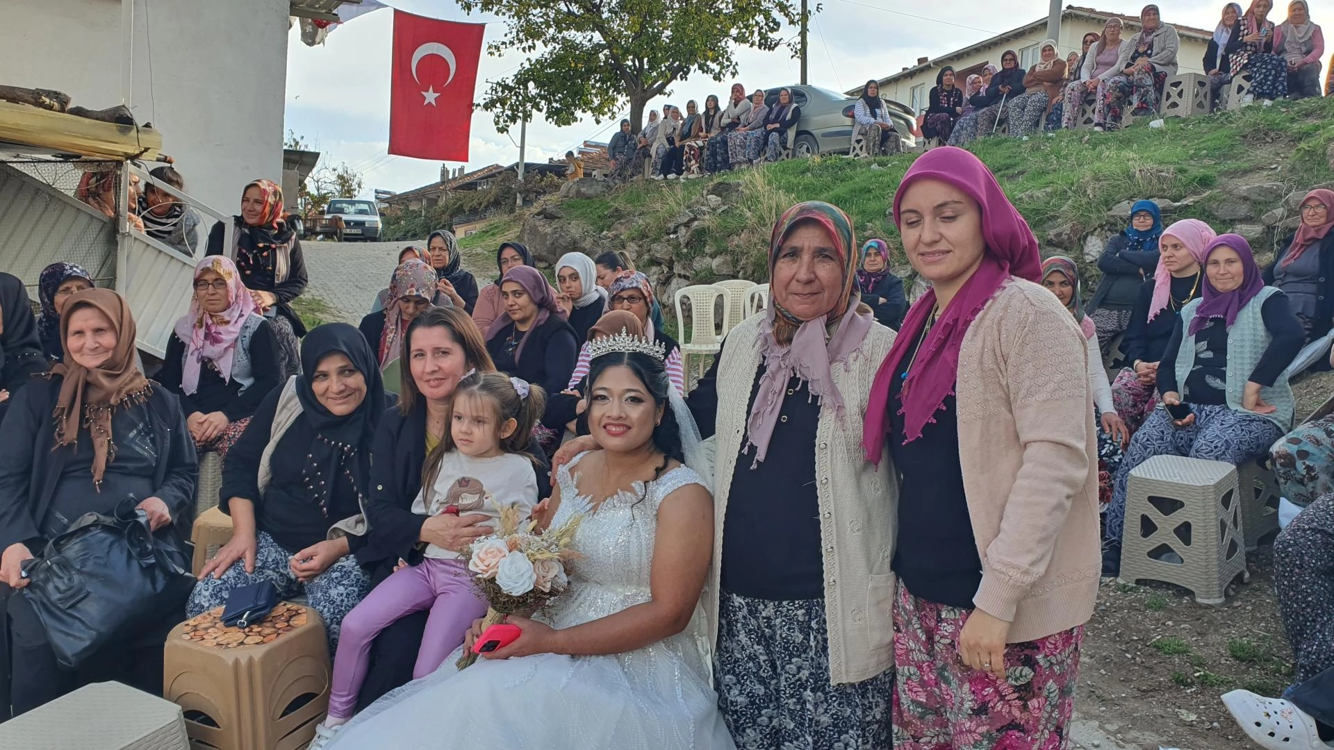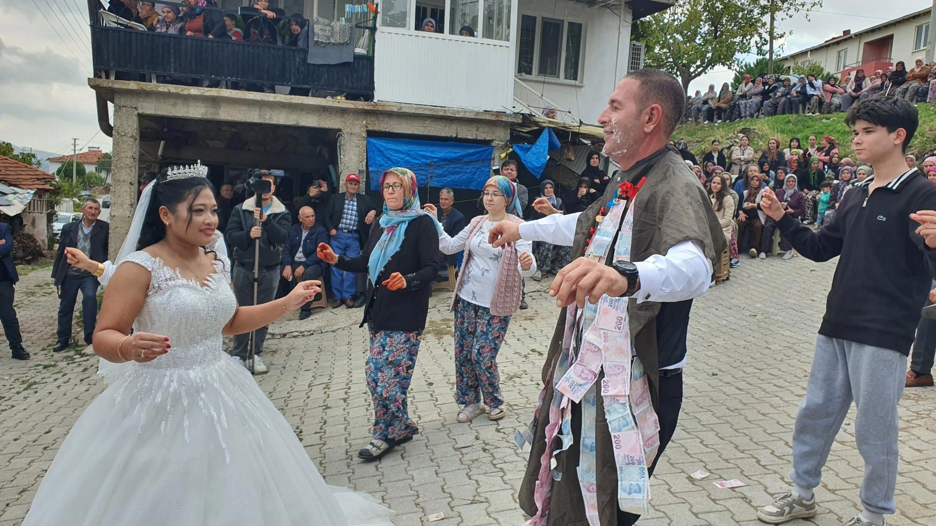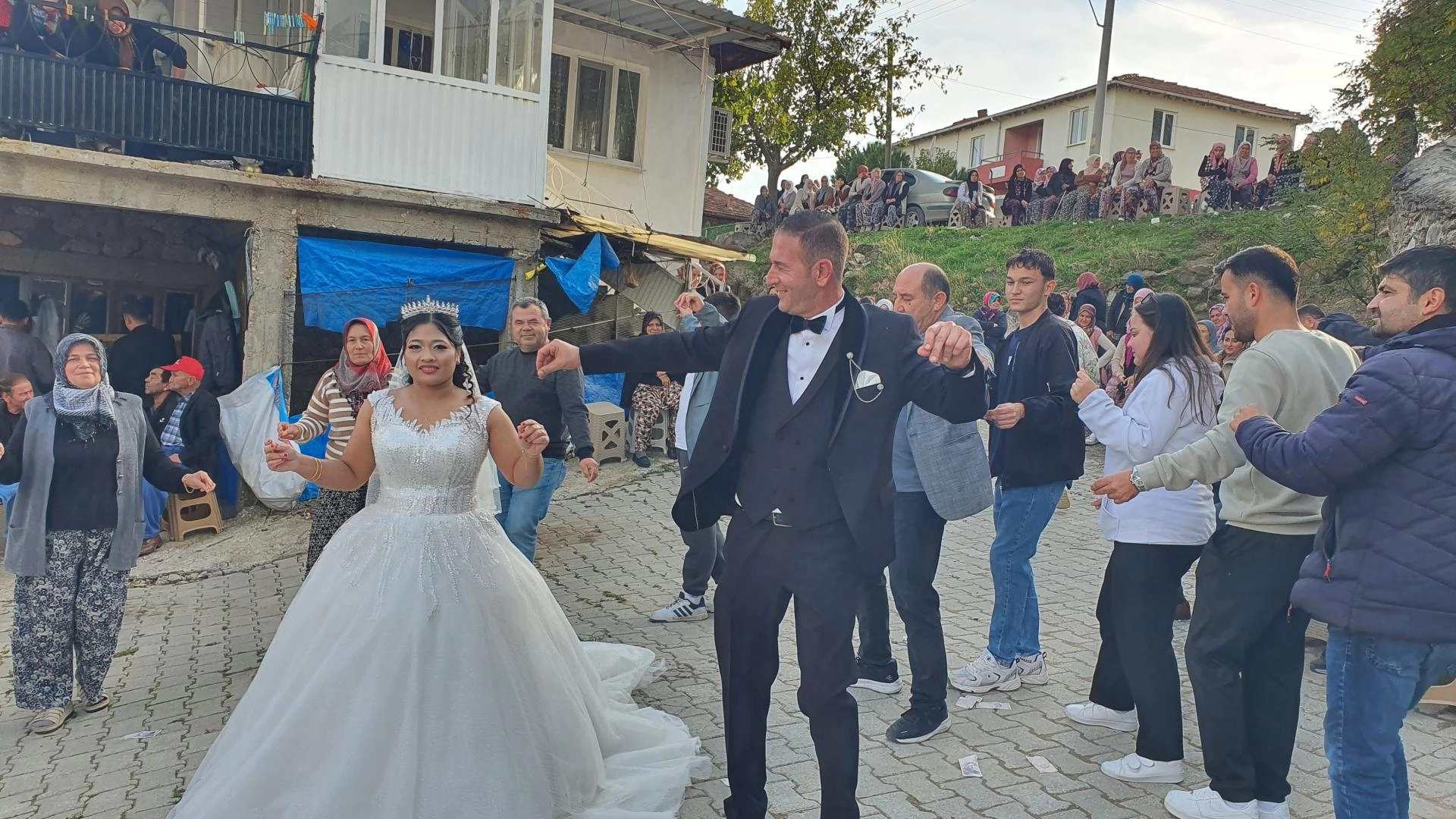 İzmir'in Çeşme ilçesinde 9 yıl önce tanışan ve iki yıl önce nikahları kıyılan çift, damadın memleketi Demirci'nin kırsal Kulalar Mahallesi'nde düğün düzenledi.