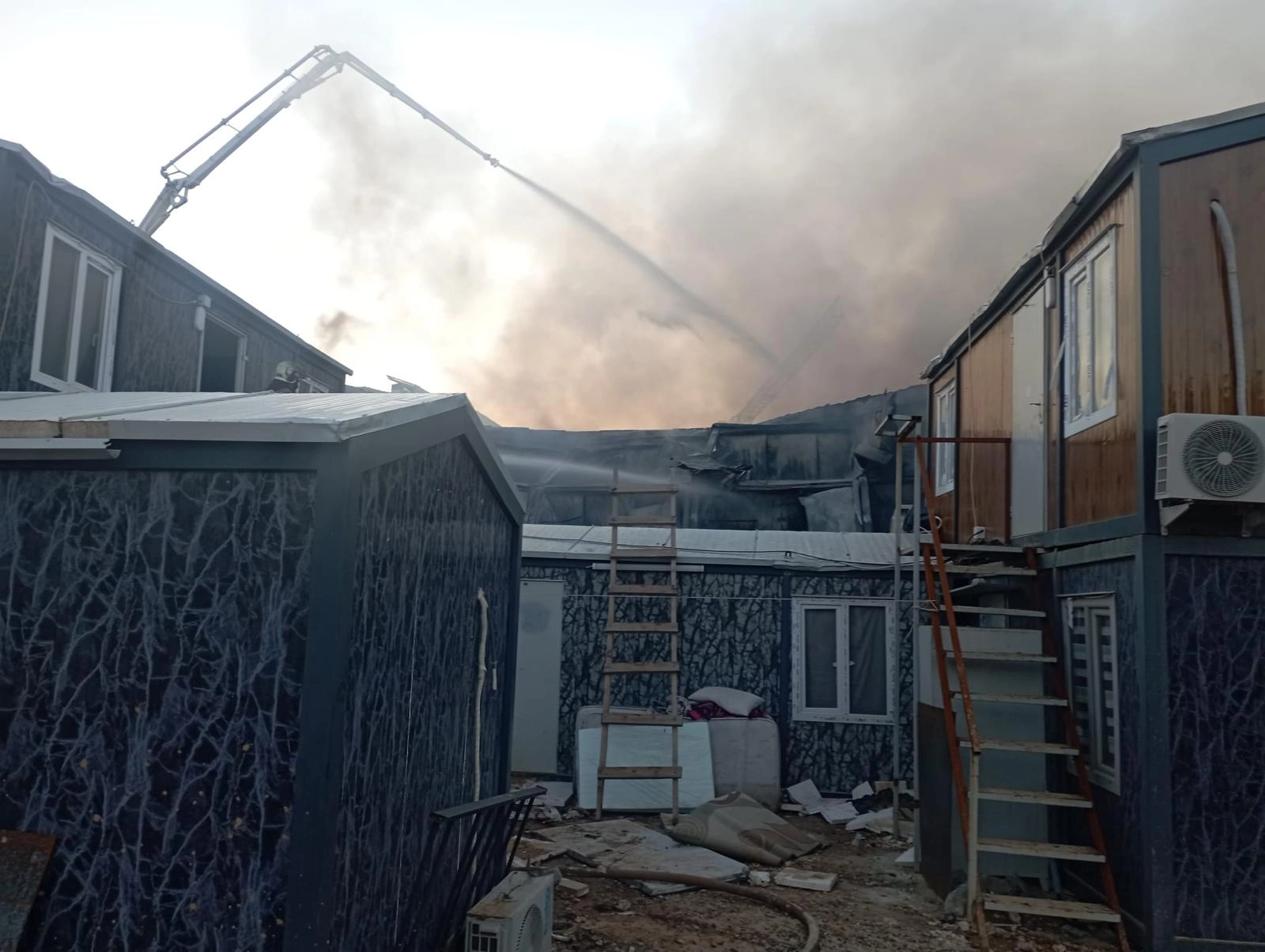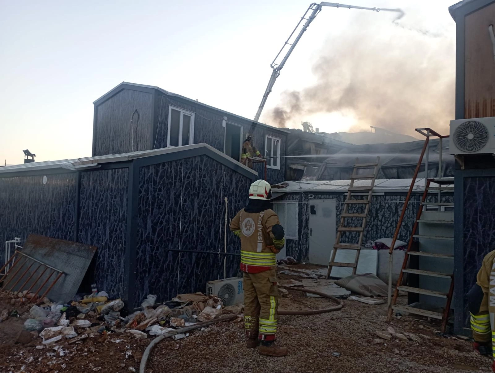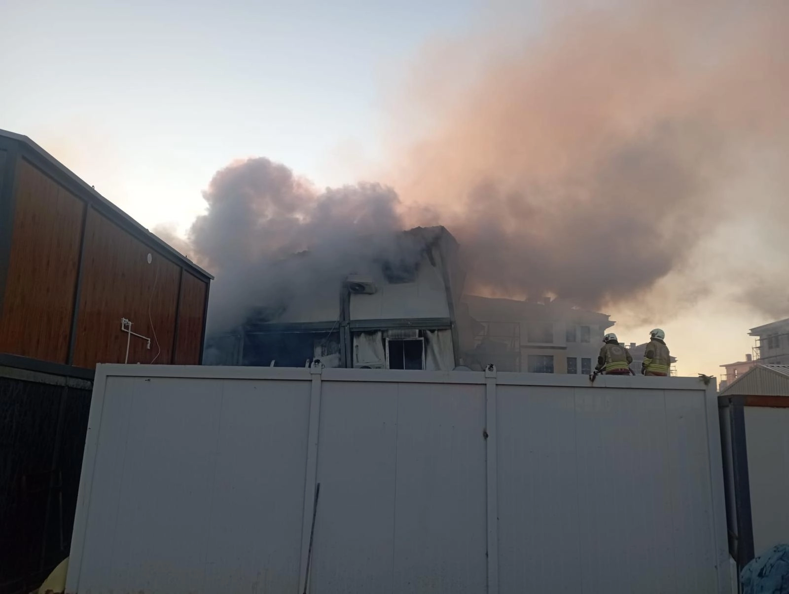 Sancaklıbozköy Mahallesi'ndeki inşaat alanında, işçilerin konakladığı 3 katlı konteynerde henüz belirlenemeyen nedenle yangın çıktı.
