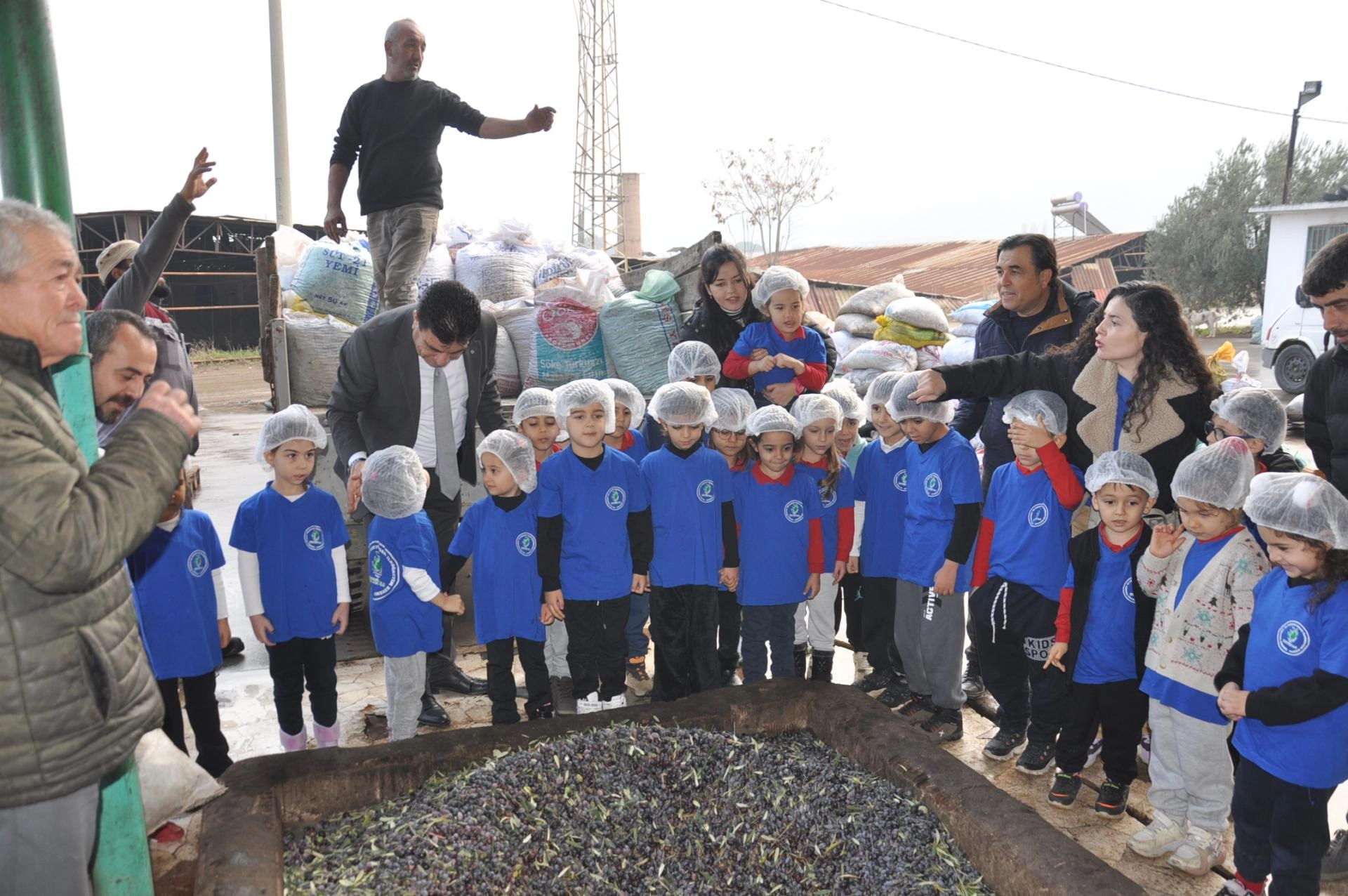 Okul müdürü Süleyman Sarı da öğrencilerin zeytinyağının üretim sürecini görerek ve yaşayarak öğrendiğini ifade etti.