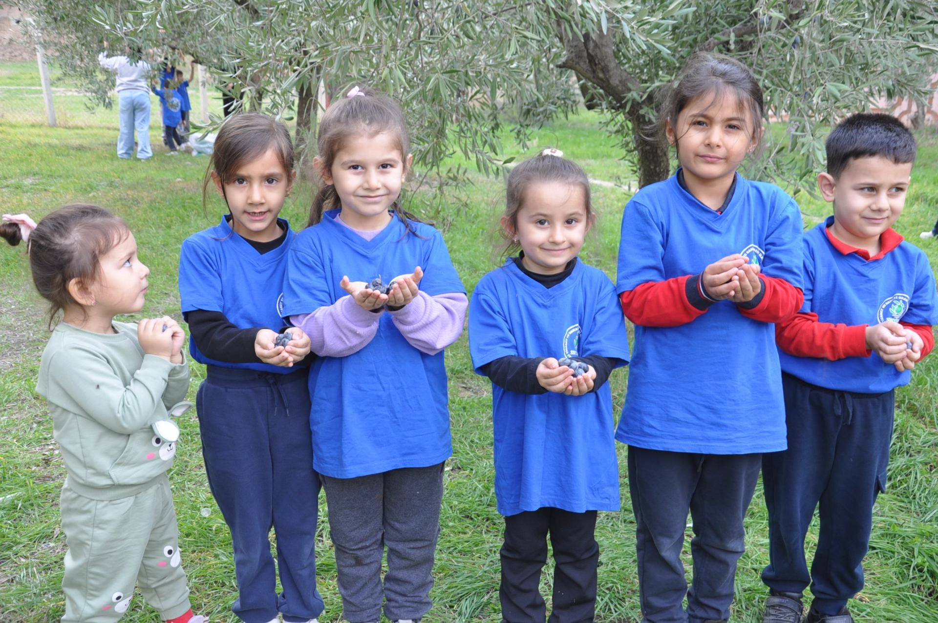 MANİSA (AA) - Manisa'nın Salihli ilçesinde anasınıfı öğrencileri, okulun bahçesindeki zeytinlerin toplanmasına yardım edip zeytinyağı sıkımına şahitlik etti.
