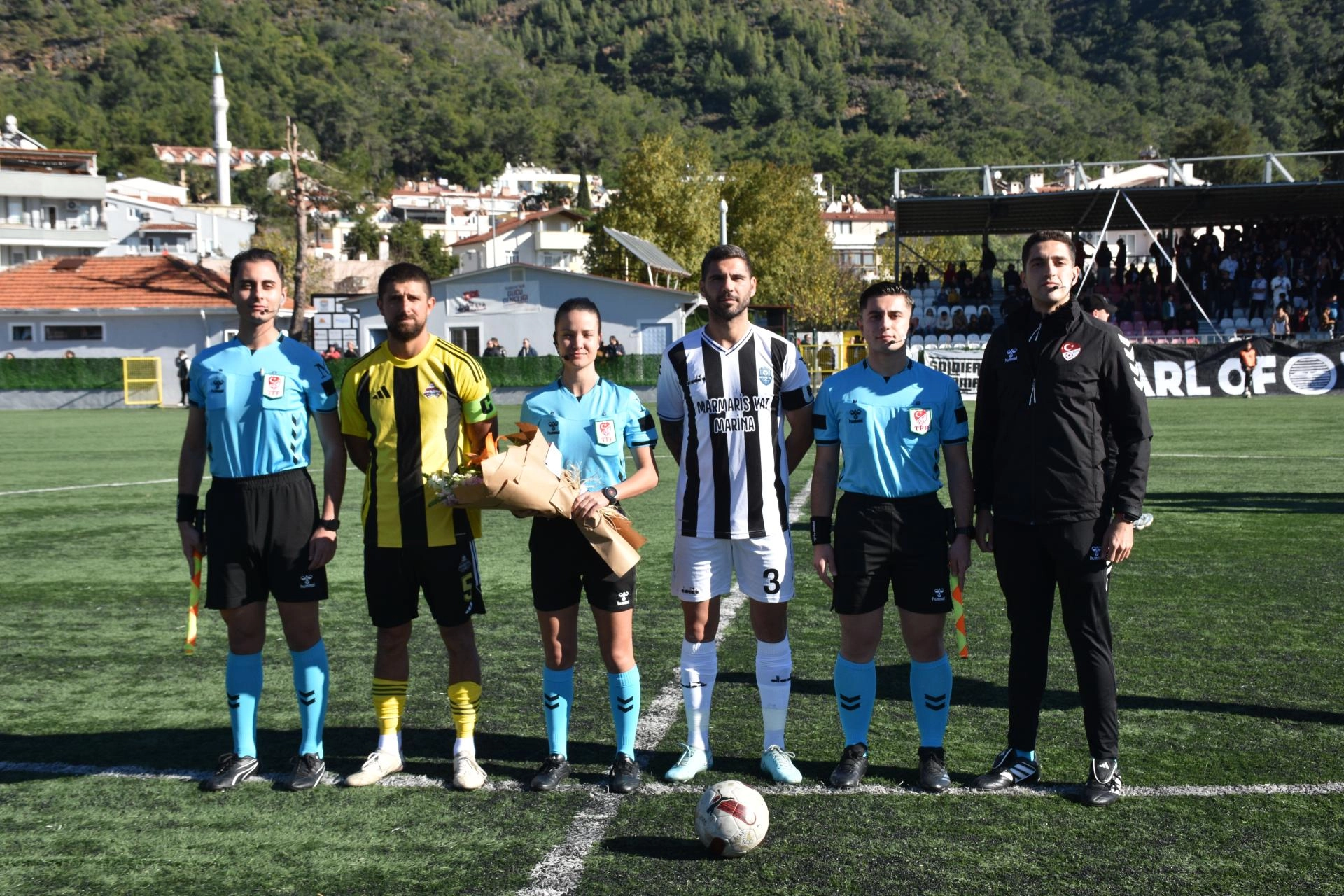 Marmaris Şehir Stadı'nda oynanan karşılaşmayı İzmir Bölgesi hakemlerinden Damla Tarkan, Yalçın Can Sevim ve Nuri Tokmak yönetti.