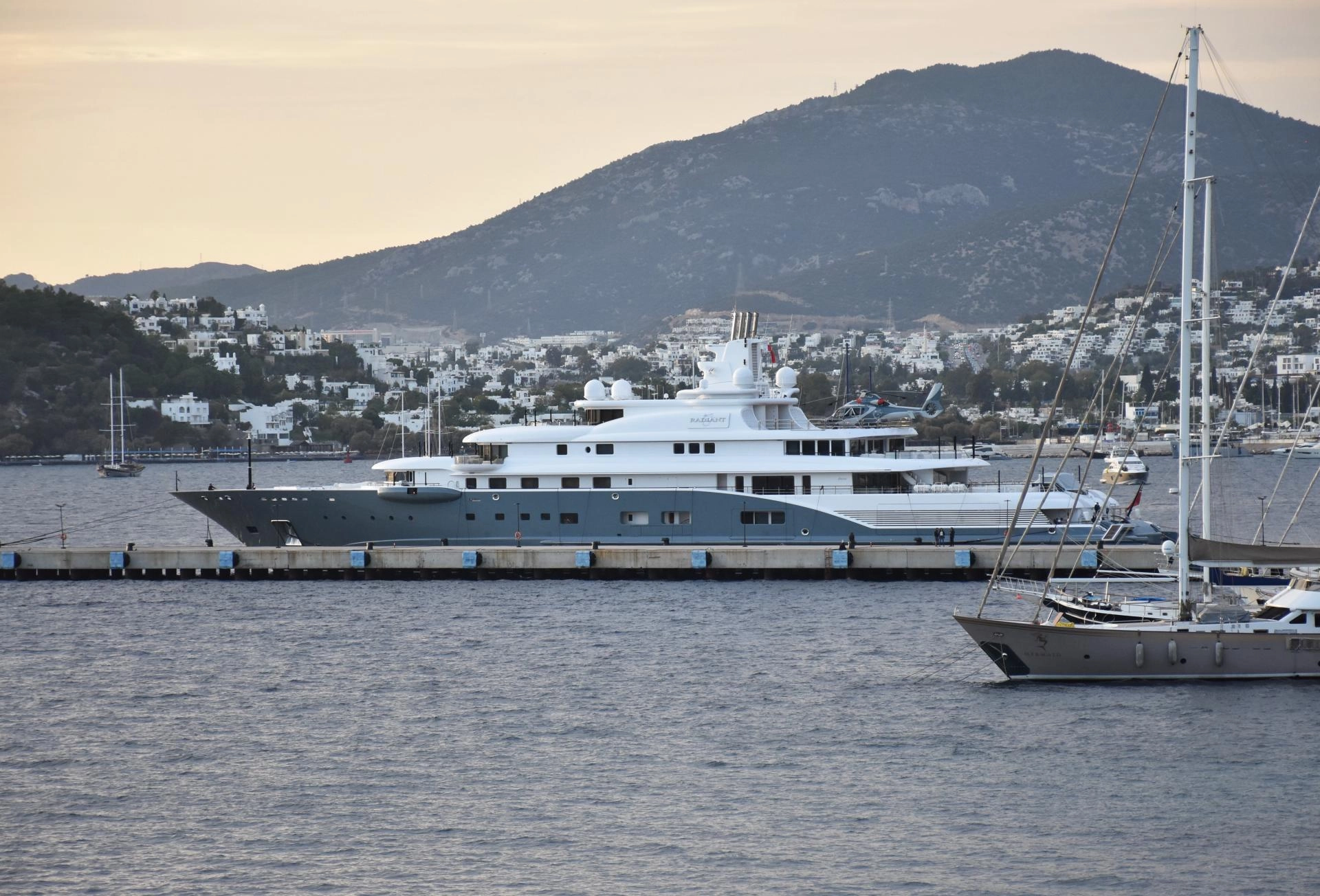 "Radiant" adlı mega yat, Bodrum Cruise Port'ta yakıt ikmalini tamamladıktan sonra Türk karasularından ayrıldı. İçerisinde plaj kulübü, yüzme havuzu, sinema salonu gibi birçok lüks özelliği barındıran yat, aynı zamanda yüksek güvenlik önlemleriyle de dikkat çekiyor. Saldırganlara karşı sonik silahlar ve askeri su topu gibi savunma sistemlerine sahip olan yat, olası tehlikelere karşı donatılmış durumda. Bu ziyaret, Bodrum'un lüks yat turizmi açısından ne kadar önemli bir destinasyon olduğunu bir kez daha kanıtladı.