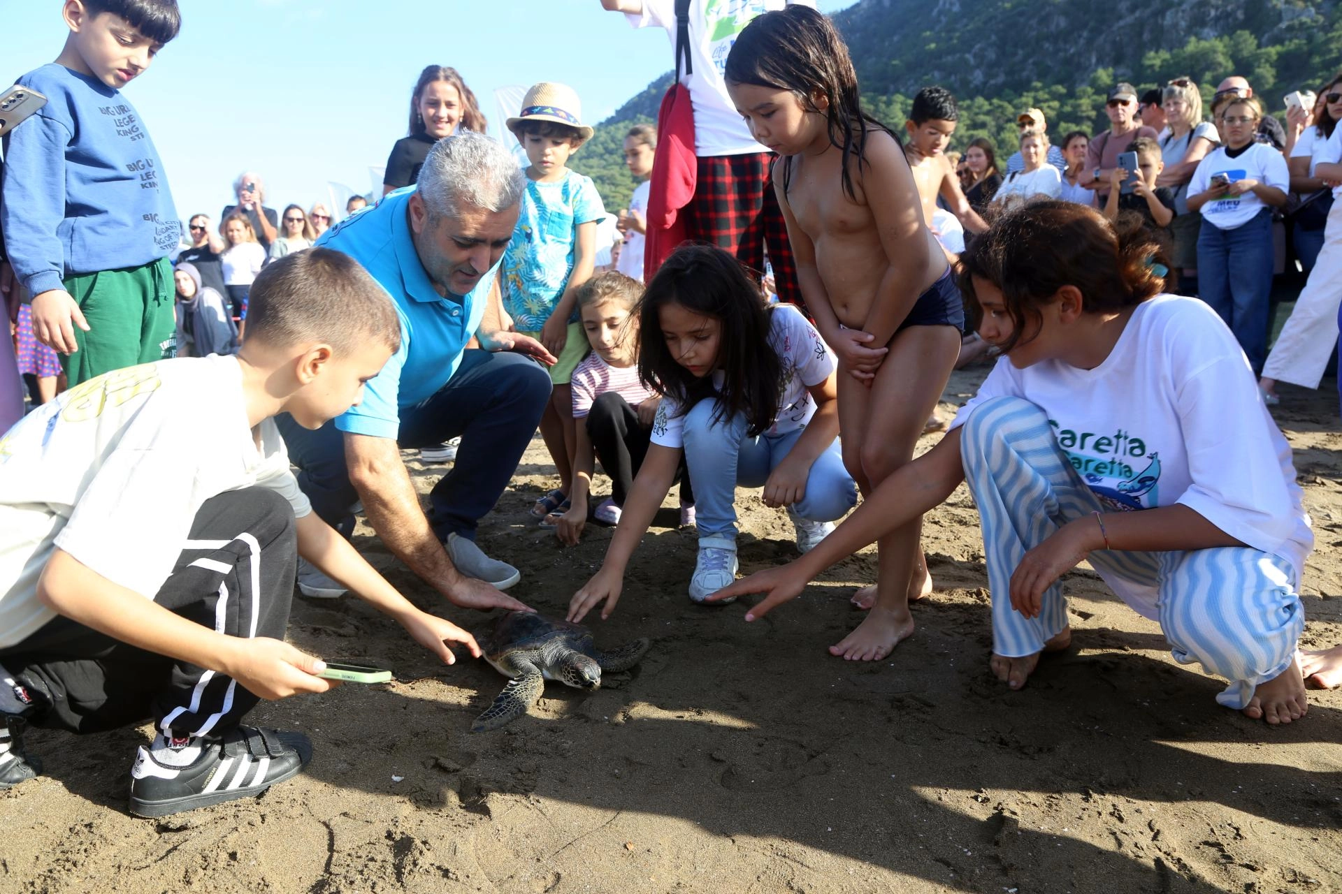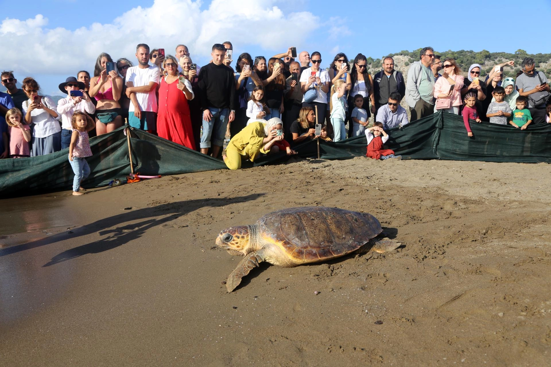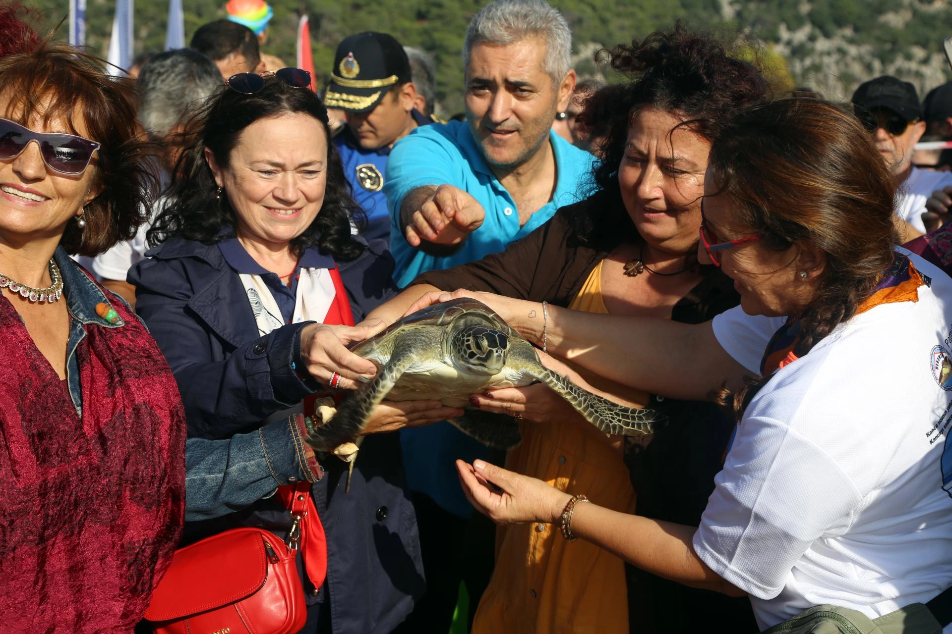MUĞLA (AA) - Muğla'nın Ortaca ilçesinde tedavileri tamamlanan 10 deniz kaplumbağası ile 5 yavru, Cumhuriyet'in 102. yılı kapsamında yapılan etkinlikte denize bırakıldı.