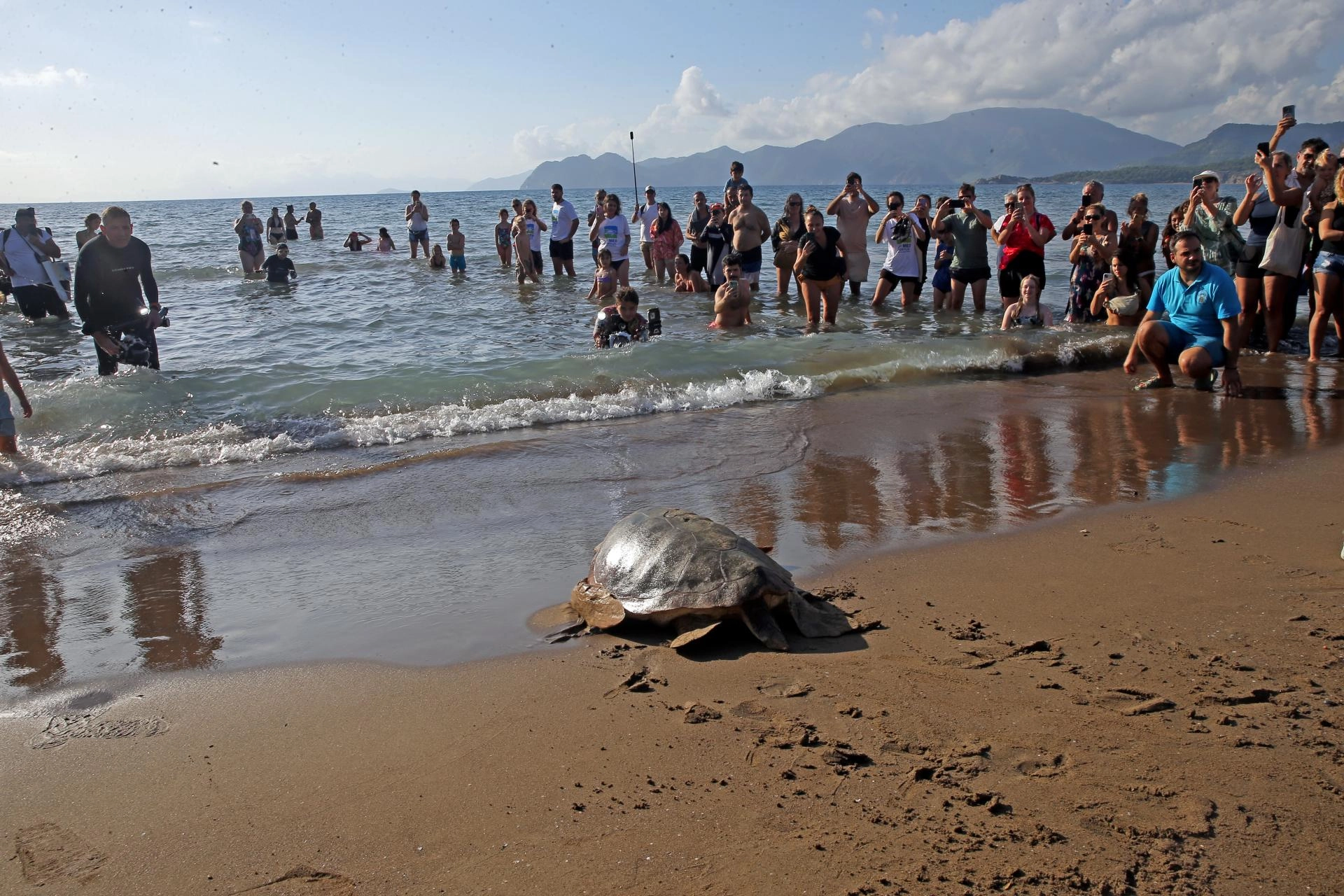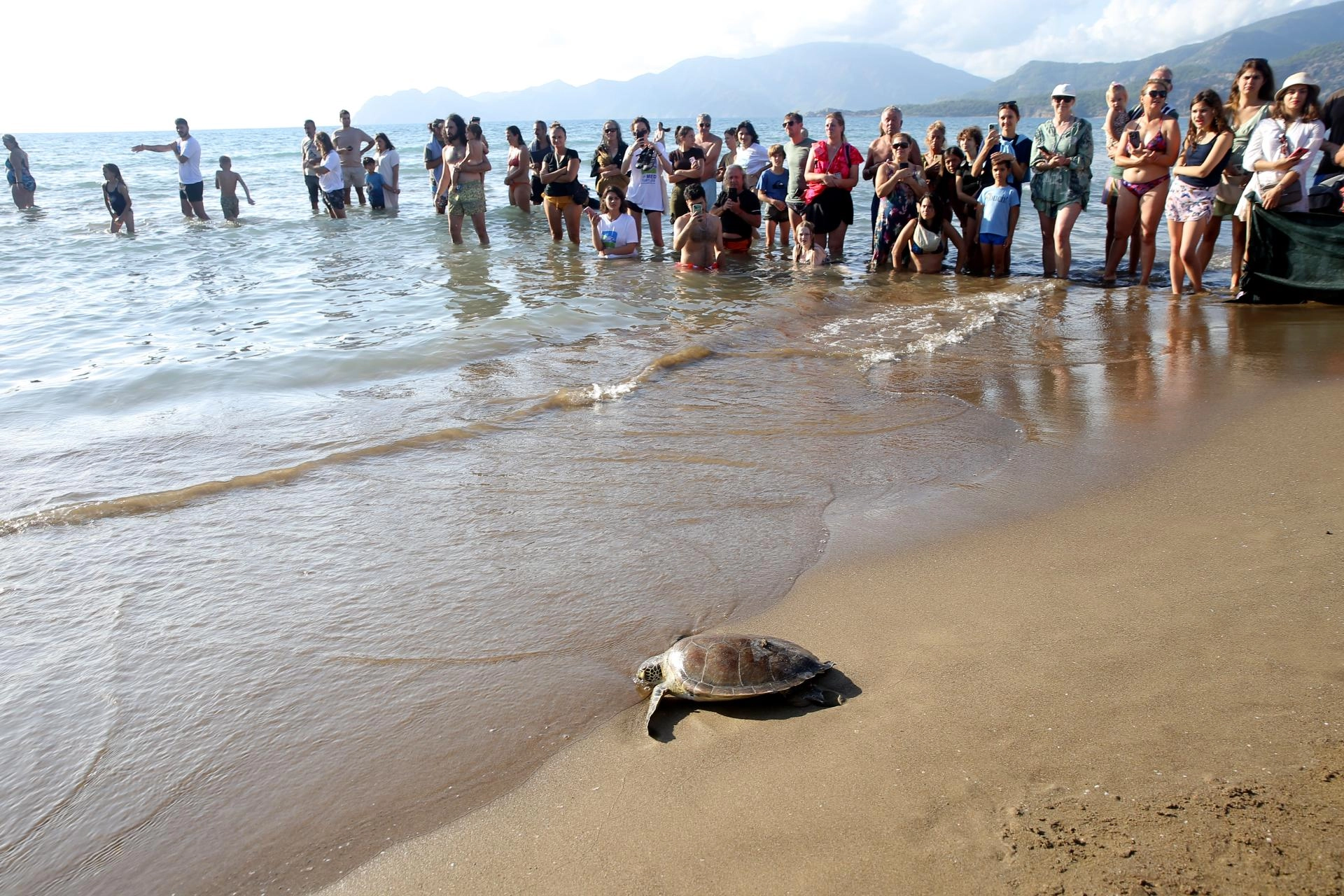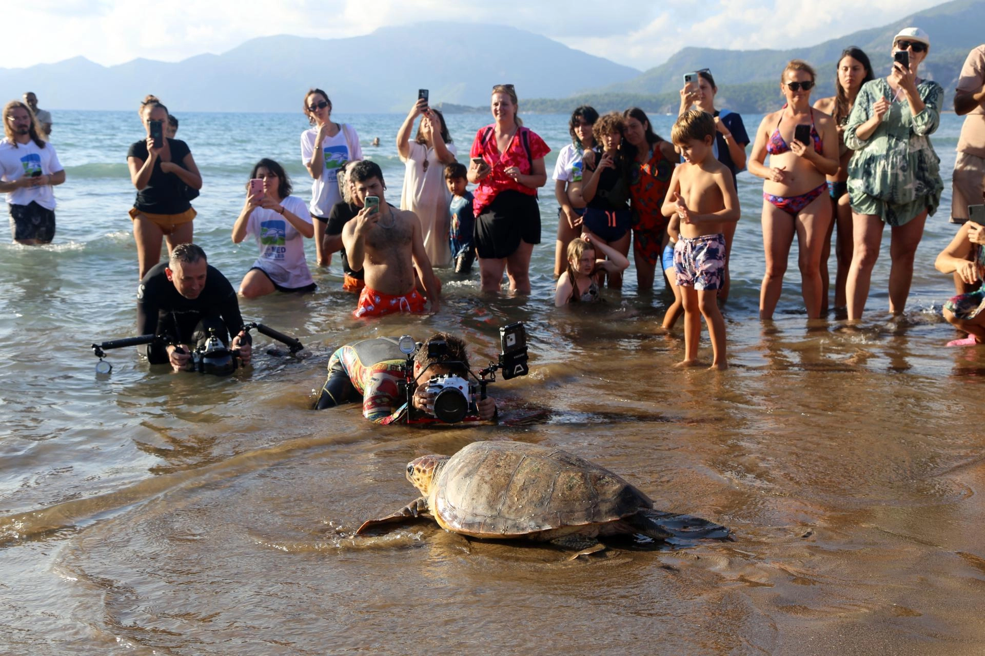 MUĞLA (AA) - Muğla'nın Ortaca ilçesinde tedavileri tamamlanan 10 deniz kaplumbağası ile 5 yavru, Cumhuriyet'in 102. yılı kapsamında yapılan etkinlikte denize bırakıldı.